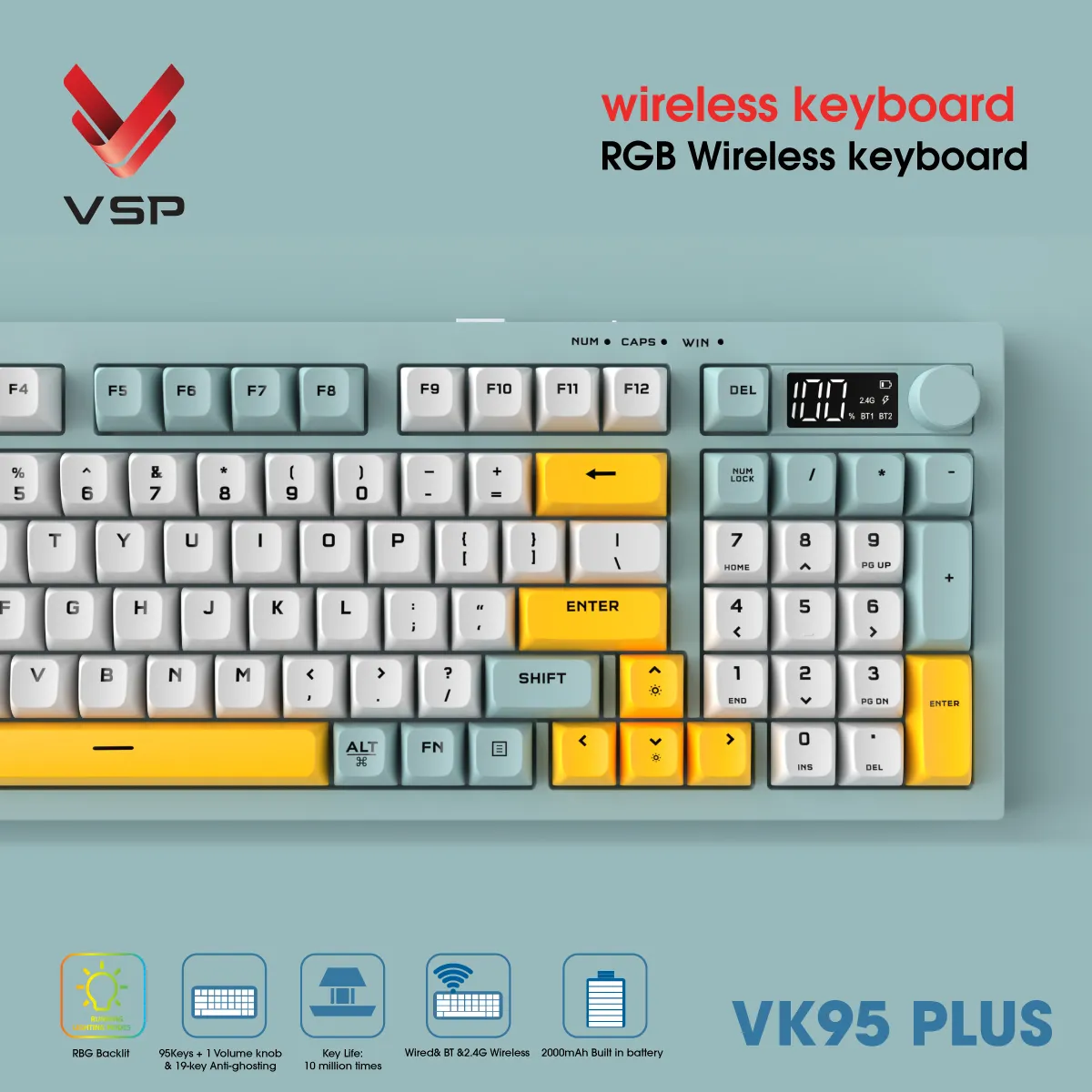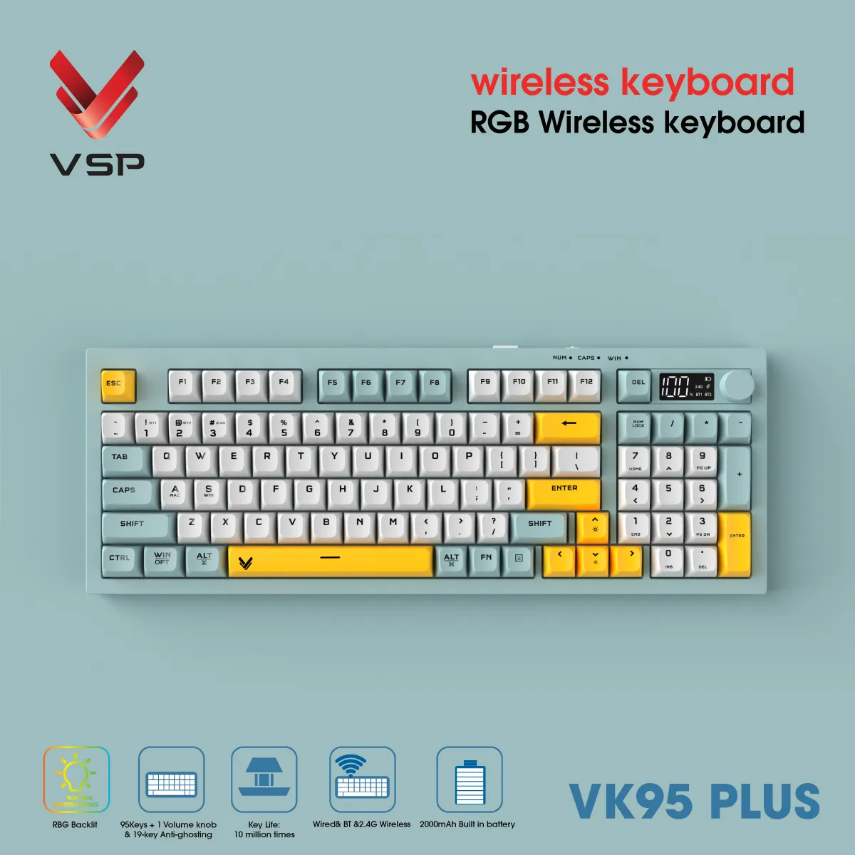 Bàn Phím Không Dây 3 Chế Độ VSP VK95 Plus là sự lựa chọn hoàn hảo cho game thủ yêu cầu sự linh hoạt, tốc độ và bền bỉ. Với thiết kế nhỏ gọn, tính năng vượt trội và đèn nền RGB bắt mắt, đây là “người bạn đồng hành” không thể thiếu trong mọi trận đấu.