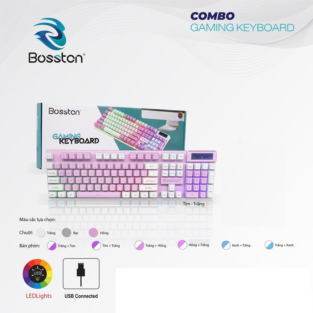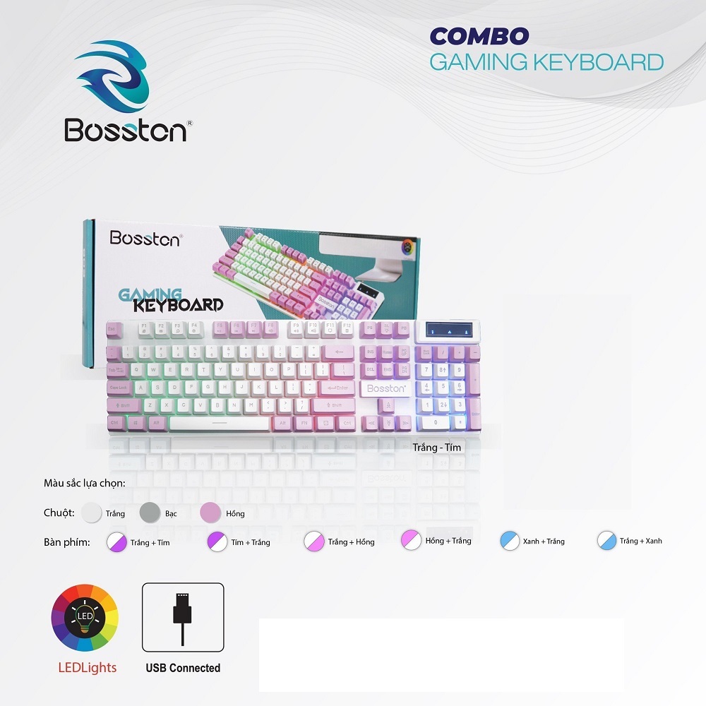 Bàn phím giả cơ Bosston 803 phong cách game esport với nhiều màu sắc cho không gian làm việc của bạn càng thêm rực rỡ.
