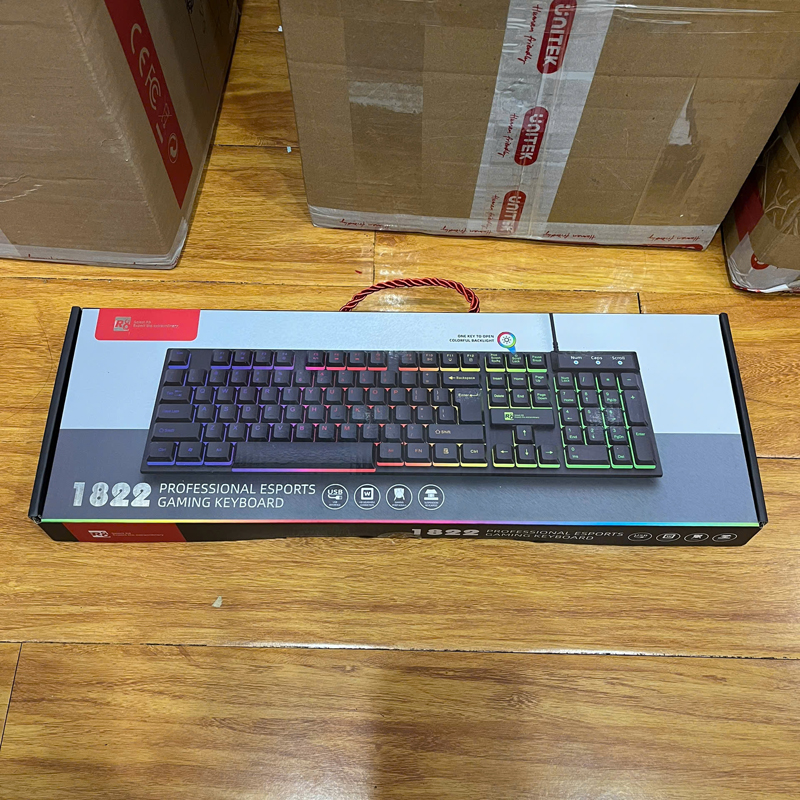 R8 1822 thường được biết đến là dòng bàn phím giả cơ chuyên game giá rẻ của thương hiệu R8. Sản phẩm này nổi bật với thiết kế hầm hố và hệ thống đèn LED 7 màu bắt mắt, phù hợp cho người dùng văn phòng hoặc game thủ phổ thông.