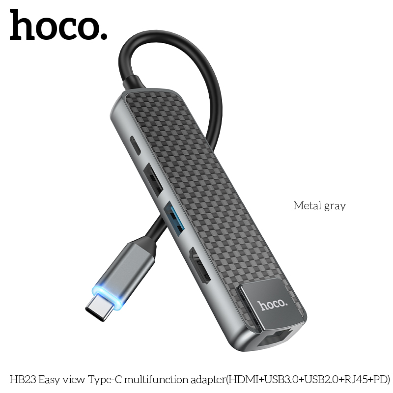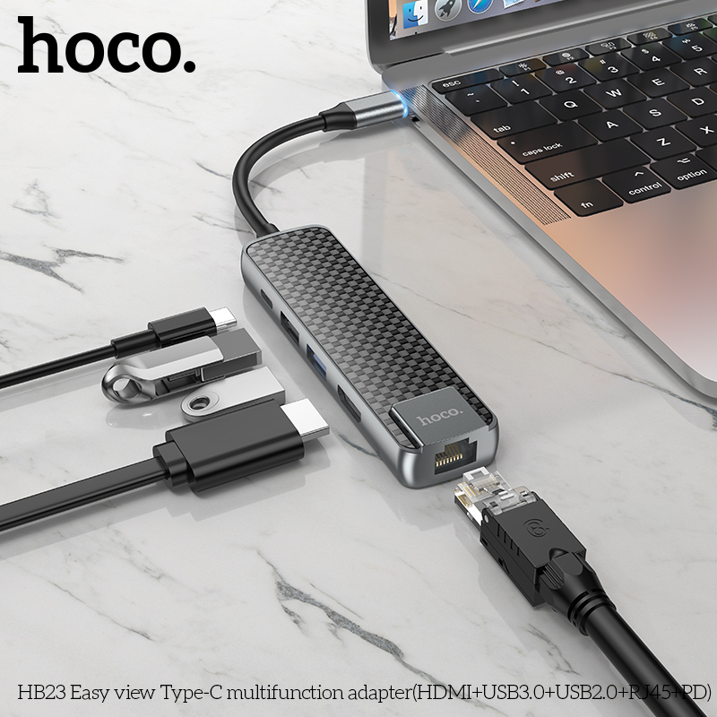 Tuy vậy, người dùng cũng không phải quá lo lắng, với Hub Hoco HB23 5 in 1 Chuyển Type C Ra USB 3.0 + HDMI + RJ45 + PD60W sẽ mang cổng HDMI, USB 2.0, USB 3.0, RJ45, PD quay trở lại thiết bị của bạn . Giúp người dùng dễ dàng sử dụng trong công việc và giải trí hằng ngày.