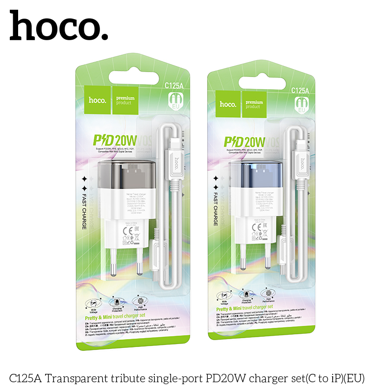 C125A Transparent Bộ sạc PD20W một cổng trong suốt C to iP EU