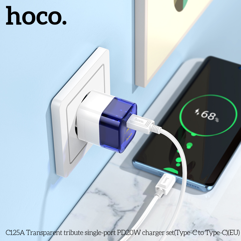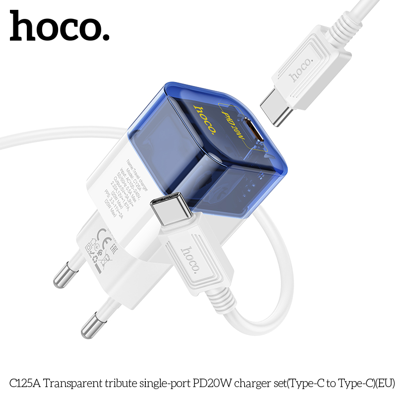 C125A Transparent Bộ sạc PD20W một cổng trong suốt Type-C to Type-C EU
