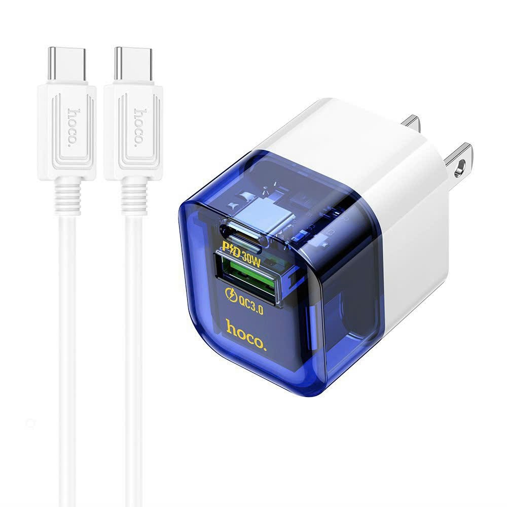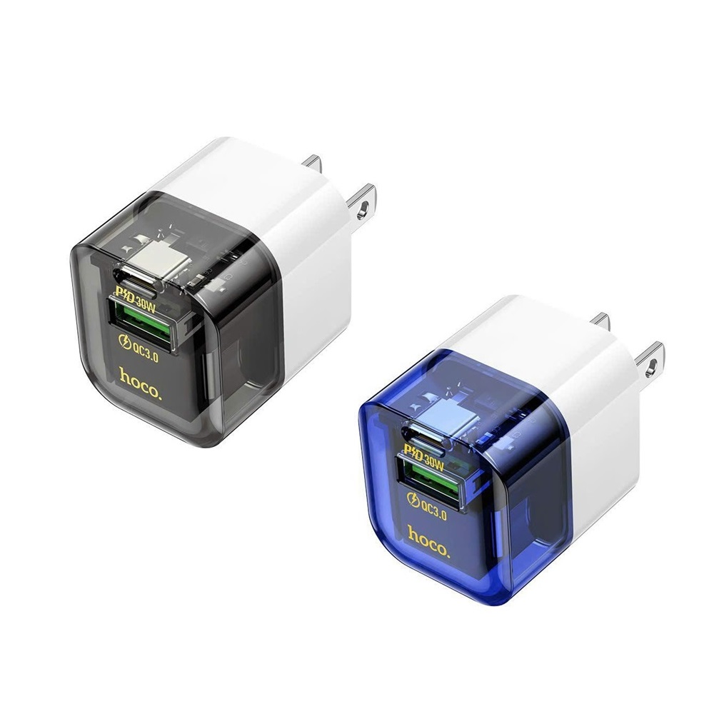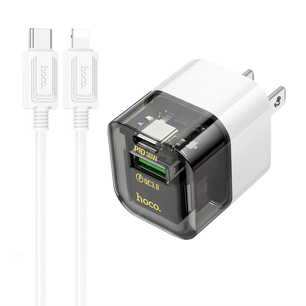 Bộ sạc nhanh 2 cổng Hoco DM-C3 PD TypeC 30W và QC3.0 18W kèm cáp TypeC or LN (màu Random)