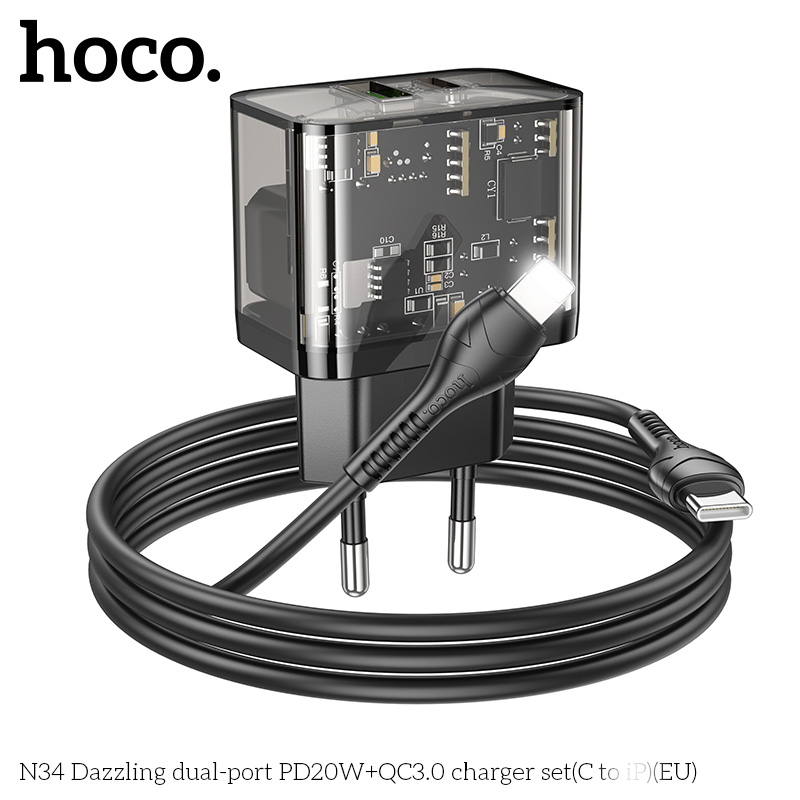 Cáp sạc đi kèm: Type-C to TypeC hoặc TypeC to LN cho iPh tùy chọn (lưu ý có phân loại chỉ có cốc sạc không kèm cáp)
