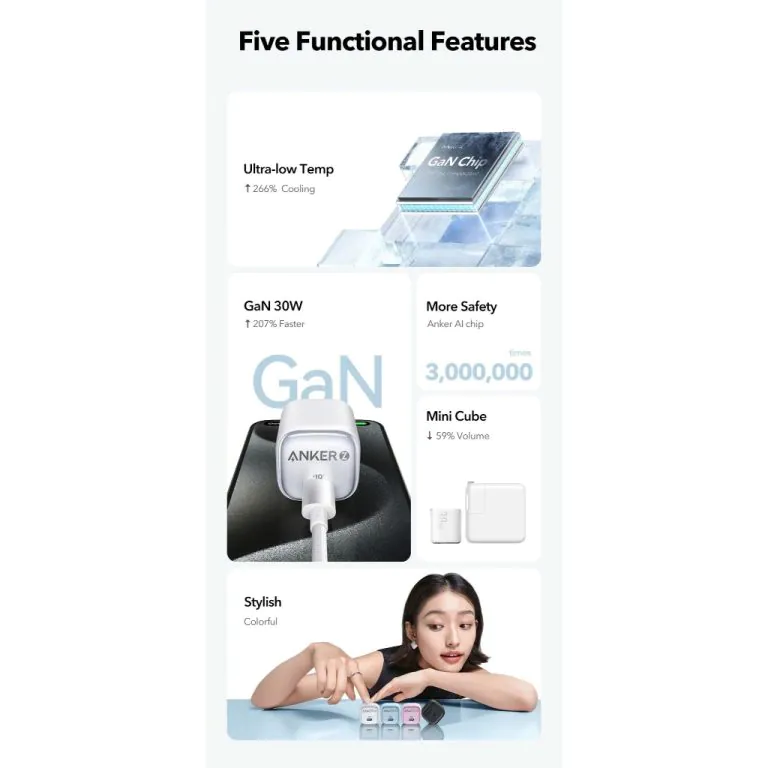 Công suất đầu ra 30W: Với công suất tối đa 30W, củ sạc đủ khả năng để sạc nhanh các thiết bị như điện thoại thông minh, máy tính bảng, và thậm chí là một số dòng máy tính xách tay nhỏ hỗ trợ USB-C.