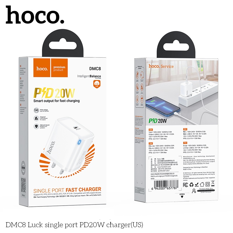 Bộ Sạc Nhanh Hoco DMC8 là một phụ kiện sạc tiện dụng và hiệu quả, hỗ trợ nhiều chuẩn sạc nhanh, với các tính năng nổi bật sau: