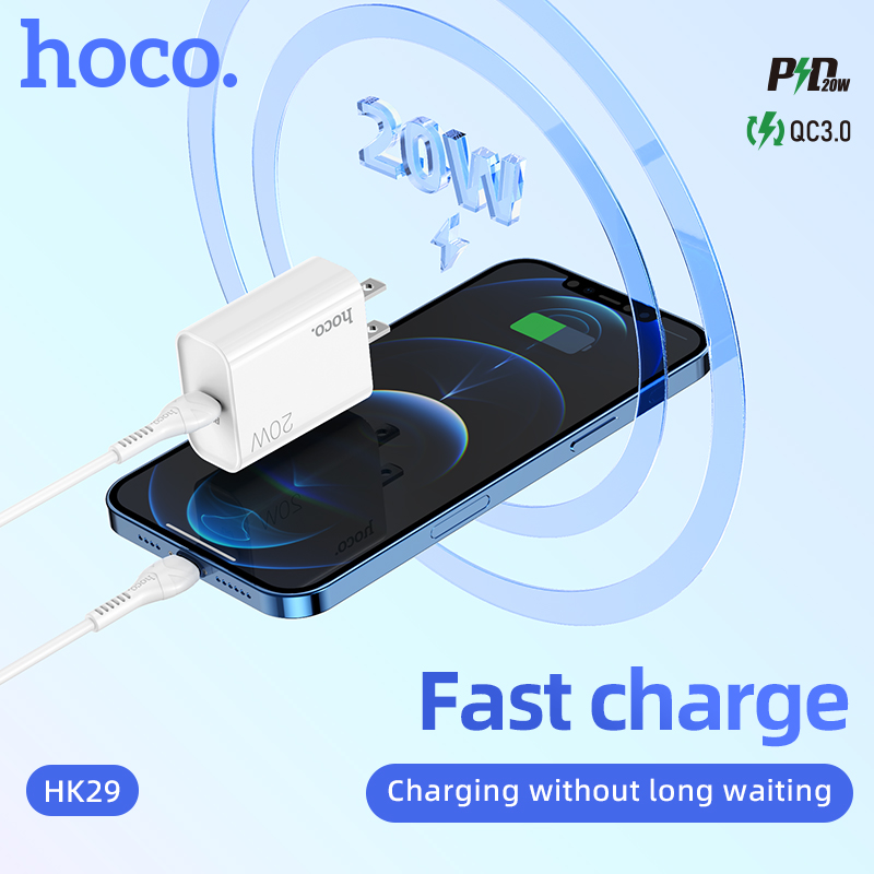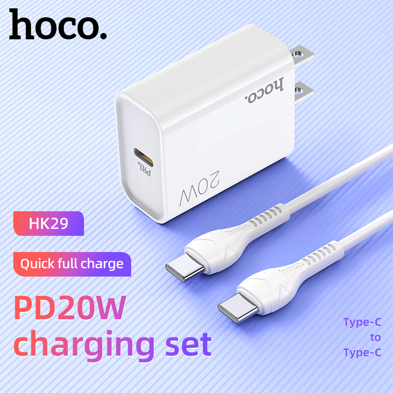 Bộ sạc nhanh Hoco HK29 kèm cáp TypeC to TypeC 20W (Trắng)