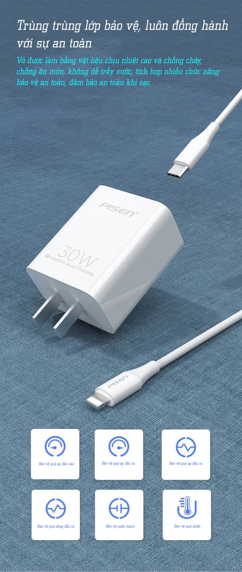 Tích hợp bảo vệ an toàn nhiều lớp: Short Circuit Protection, ovp, OTP, OLP, ocp, Overcurrent