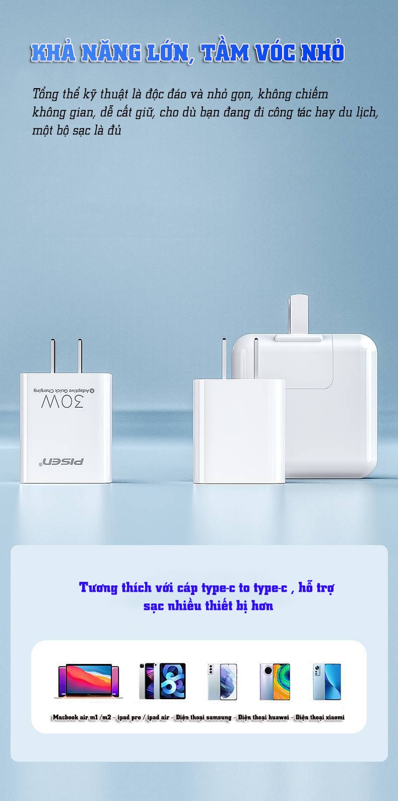Điện áp ra : Type-C: 5V-3A, 9V-3A, 12V-2A, 20V-1.5A (30W Max )