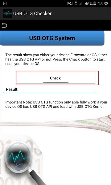 - Bước 3: Bấm Check để bắt đầu kiểm tra máy có hỗ trợ OTG không.