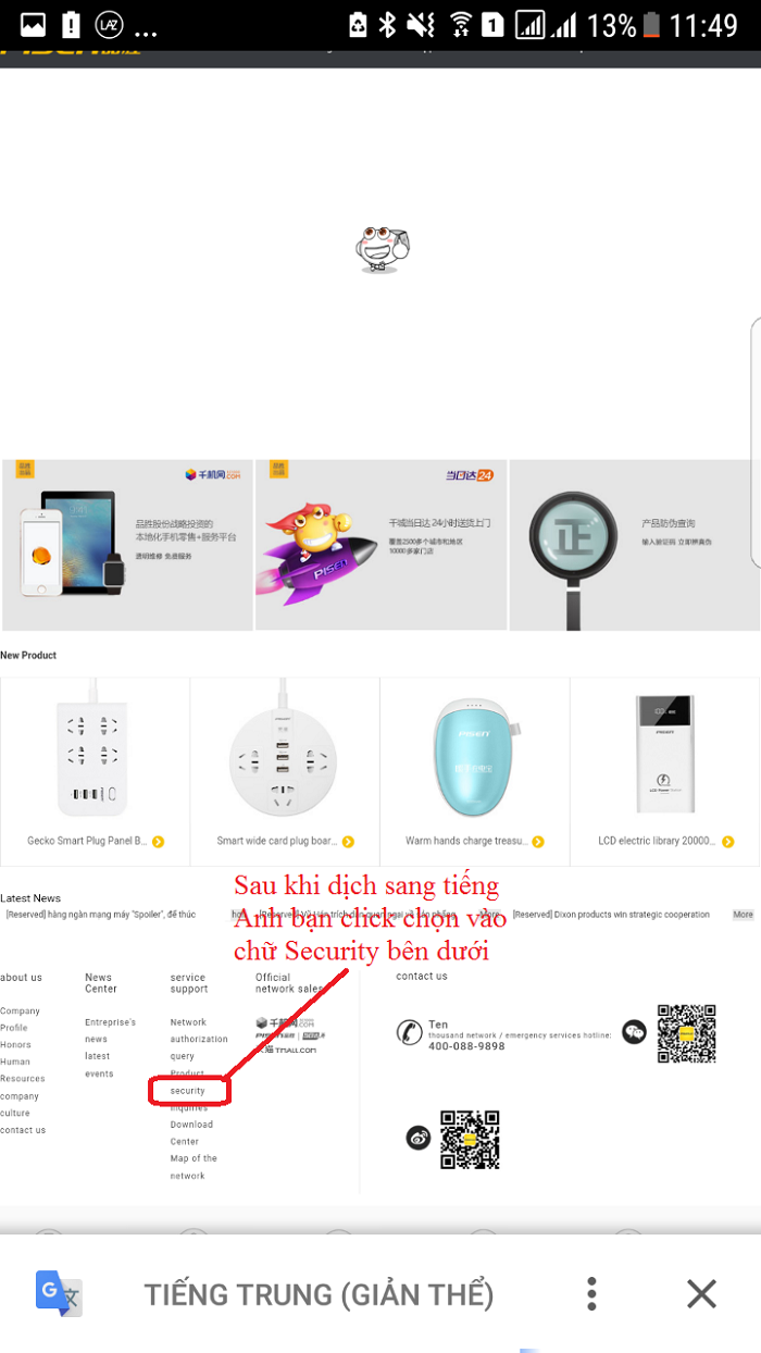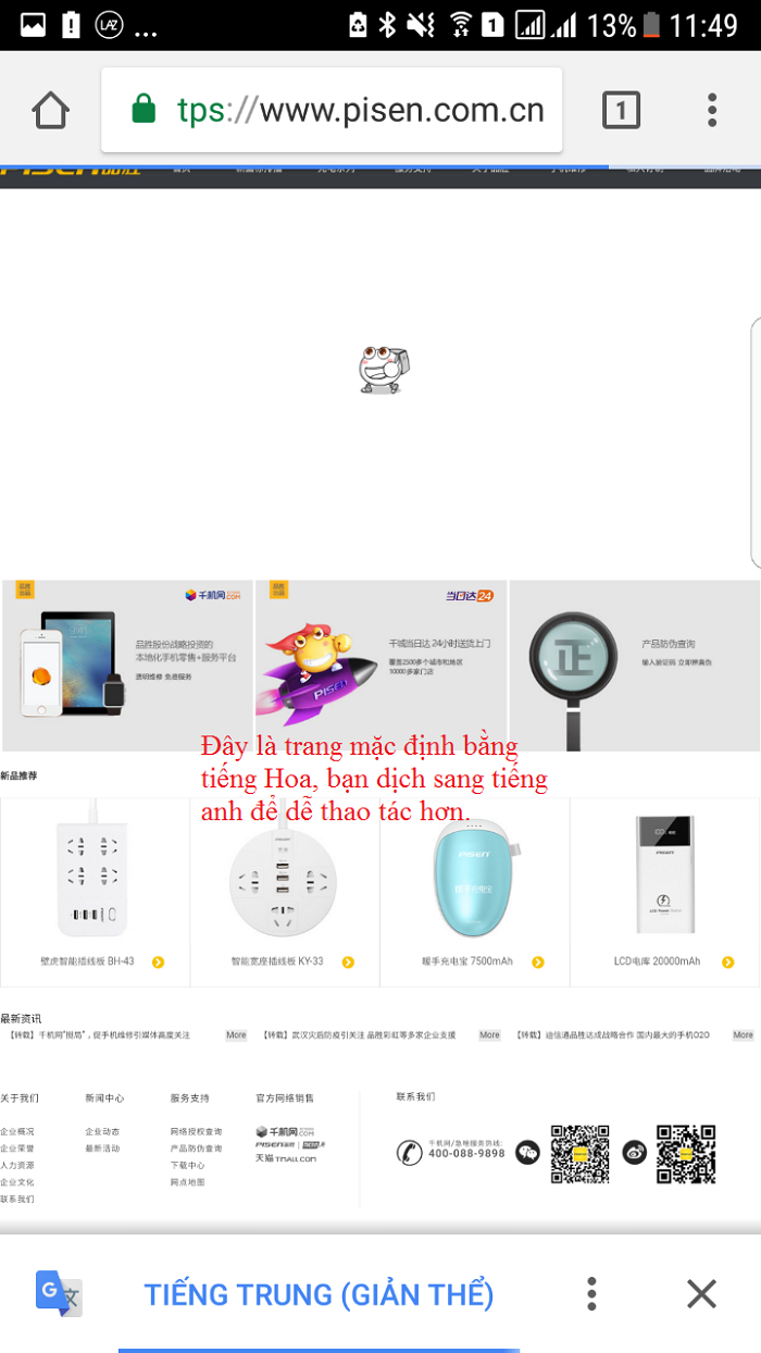 - Truy cập vào website của hãng Pisen ở phía sau hộp sản phẩm hoặc bấm vào link này: www.pisen.com.cn