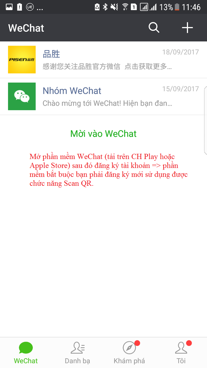 => Quý khách phải tải phần mềm WeChat về mới quét được mã code nhé (nếu như quý khách sử dụng Zalo quét thì cũng sẽ bị chuyển về phần mềm WeChat và bắt tải về), sau khi tải về quý khách cần đăng ký mới sử dụng được phần mềm.