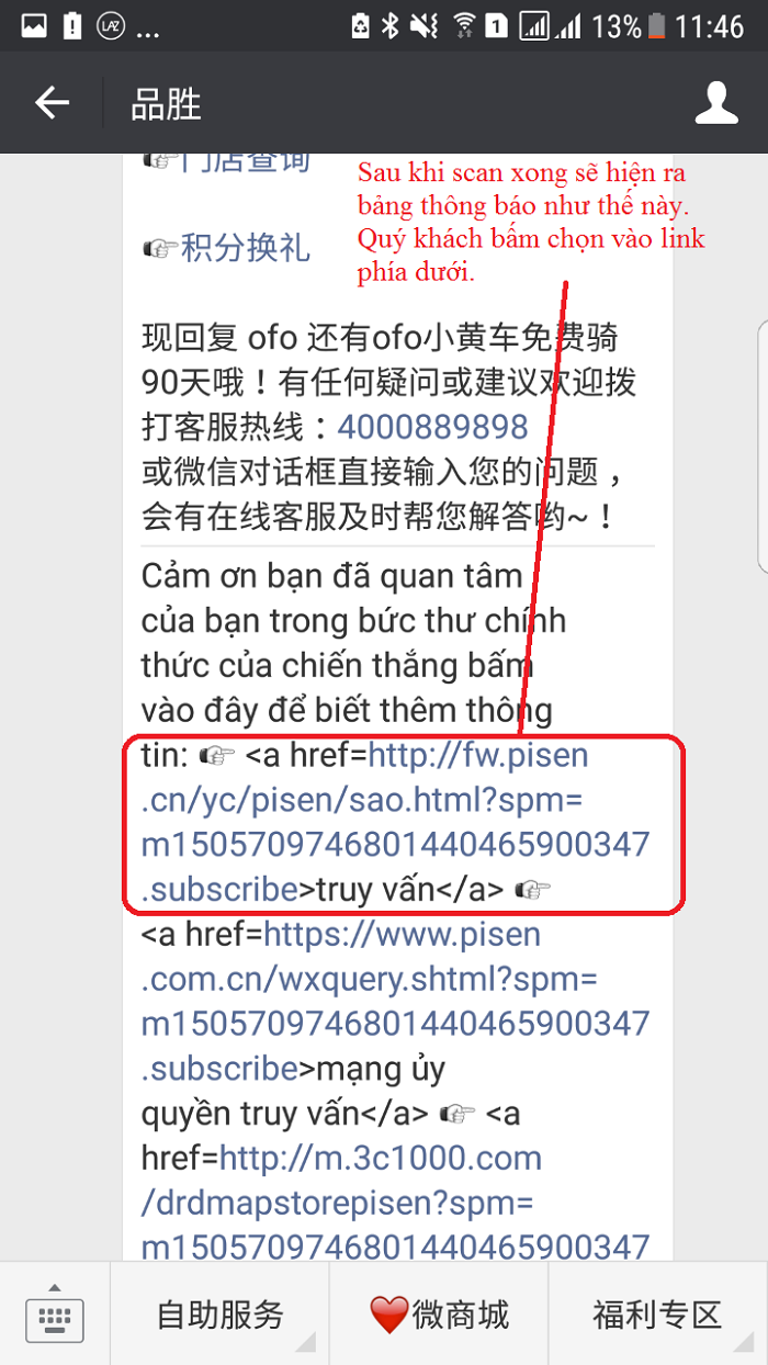=> Quý khách scan trực tiếp trên hình dưới đây hoặc trên phần hướng dẫn của hãng Pisen (bước trên):