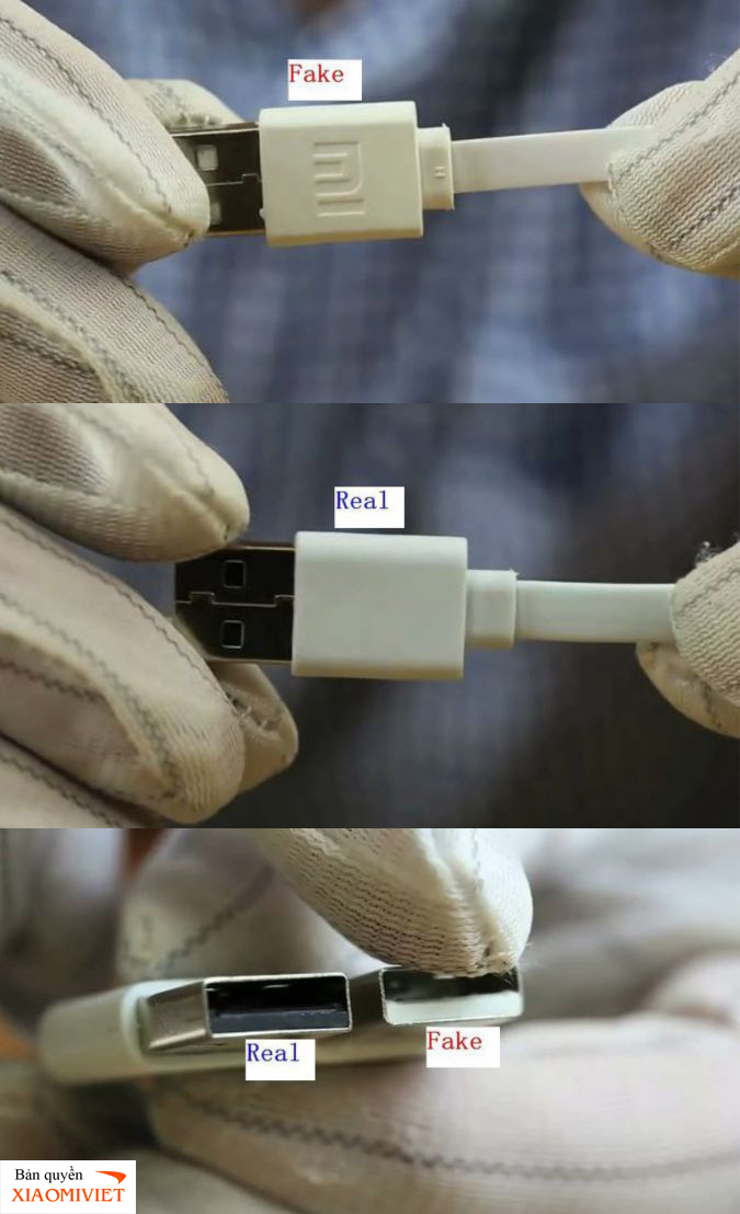 * Hàng fake : có logo MI, đầu cắm màu trắng.
