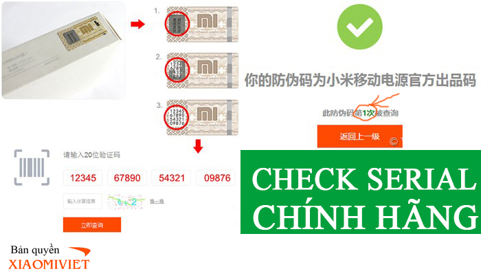 Xiaomi không có đại lý bán lẻ giống bất kỳ một hãng nào , họ bán trực tiếp tới tay người tiêu dùng thông qua website chính thức , mỗi pin dự phòng , smarphone hay máy tính bảng xiaomi được cung cấp 1 rố serial khi được cung cấp ra thị trường , đối với pin bạn có thể check trực tiếp tại địa chỉ http://chaxun.mi.com, gõ 20 ký tự serial number và điền Captcha code để check code online . Sau đó nhấn vào nút mầu cam và nếu xuất hiện thông báo đó là lần check đầu tiên ( số 1 như vùng khoanh mầu đỏ ) là hàng chính hãng , các bạn lưu ý mỗi mã số chỉ có thể kiểm tra được một lần duy nhất lưu ý ko dùng móng tay để cào mã rất dễ bay hết số , các bạn hãy dùng phần thịt để chà xát một chút là lộ phần serial ra ngay.