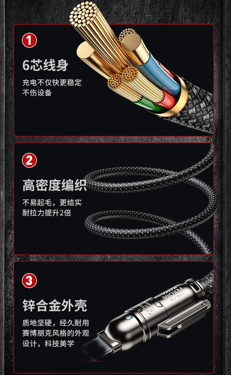 Cáp sạc Wekome WDC-50 được làm từ hợp kim kẽm và silicon lỏng – hai chất liệu cao cấp giúp cáp bền bỉ hơn, chống đứt gãy và chống xoắn. Với thiết kế chắc chắn, cáp có thể chịu được va đập và kéo dài tuổi thọ sử dụng, giúp bạn tiết kiệm chi phí thay mới.