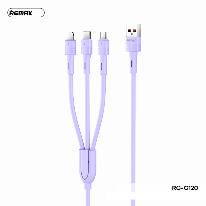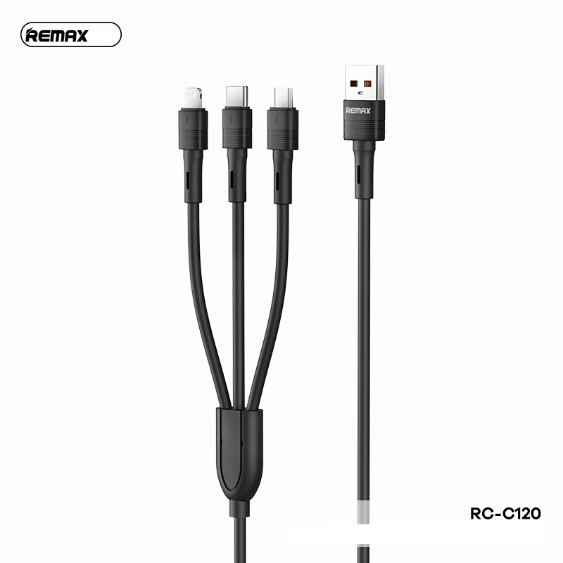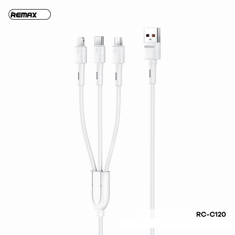 Cáp 3 trong 1 Remax RC-C120 là sản phẩm cáp hiện đại tích hợp 3 cổng sạc, đồng thời cho khả năng sạc nhiều thiết bị ở 3 giao diện sạc khác nhau cùng 1 lúc. Đồng thời cáp có khả năng tương thích tốt với hầu hết các thiết bị táo và Android.