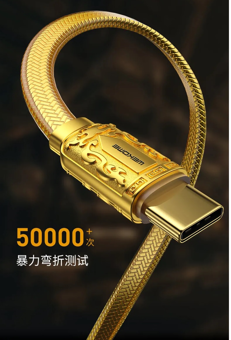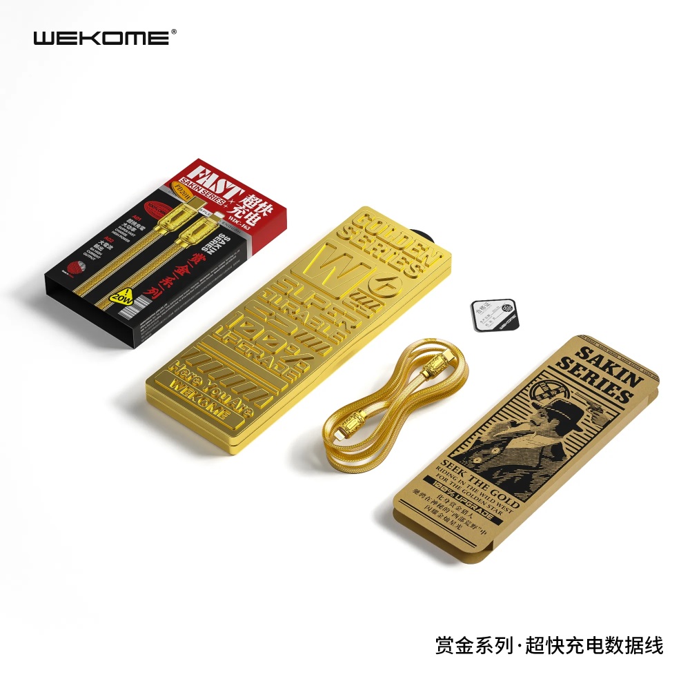 Nằm trong Series Sakin, hộp của Cáp Sạc WDC-162th SAKIN WEKOME được làm từ kim loại dập nổi, chi tiết được in rất sắc nét, một màu vàng hoàng kim nổi bật, ấn tượng, sang trọng.