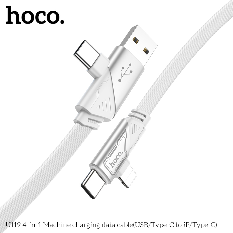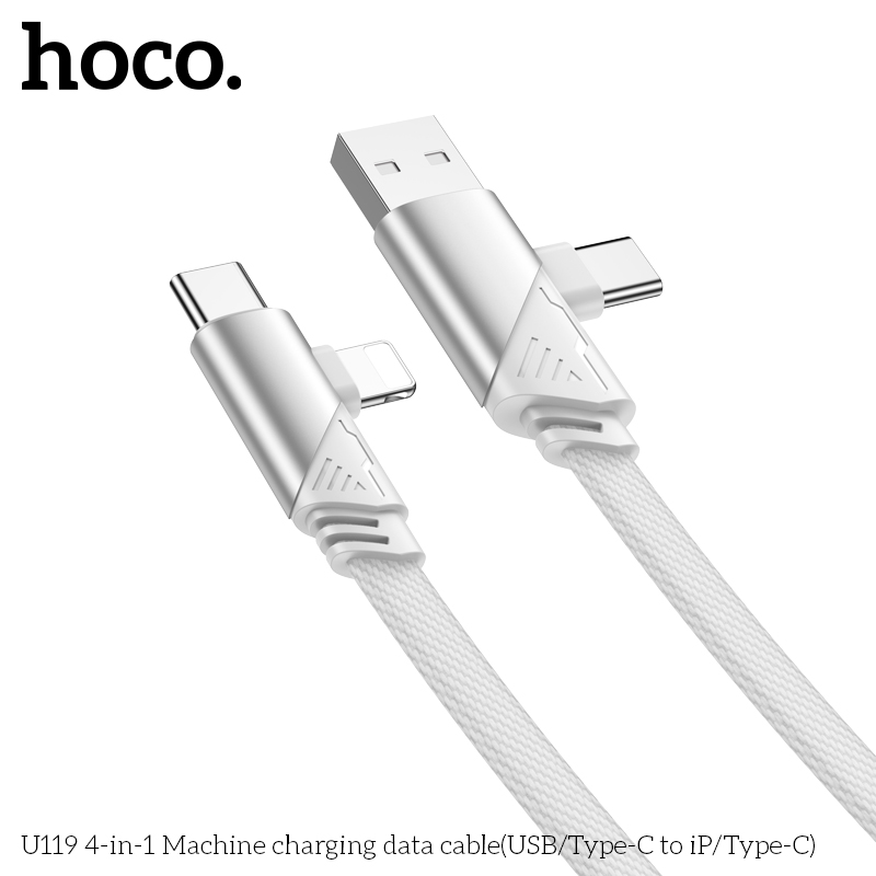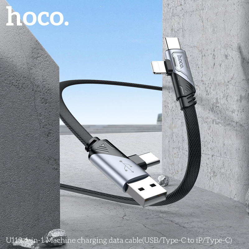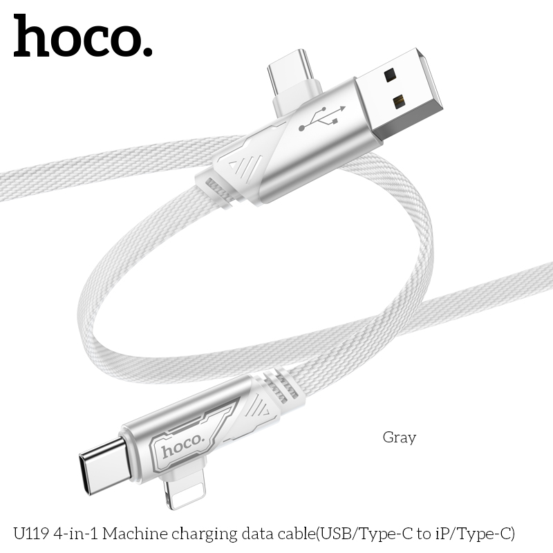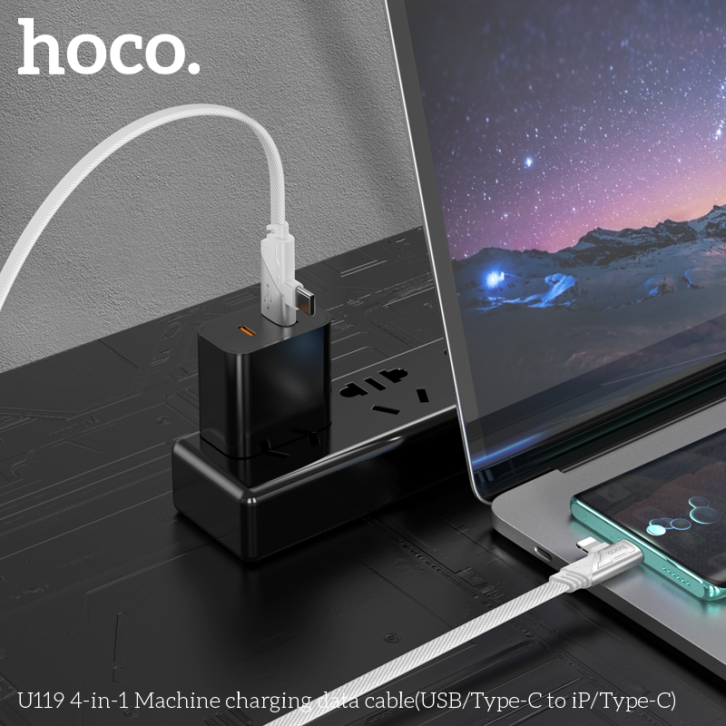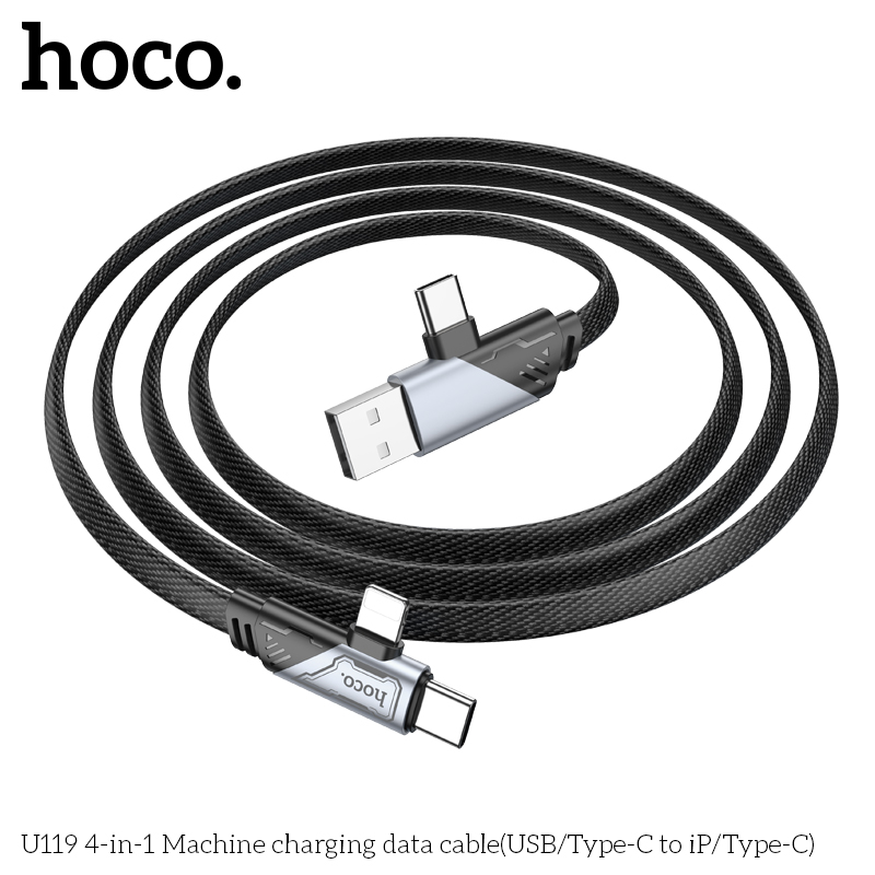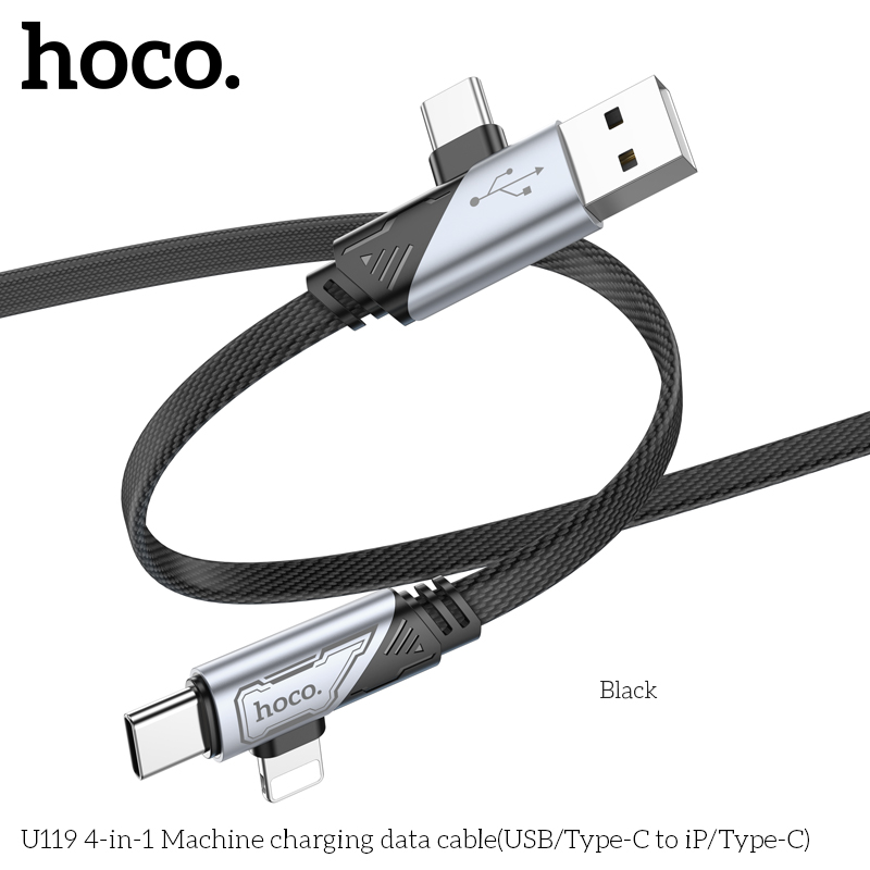 Cáp sạc nhanh đa năng 2in2 Hoco U119 TypeC to TypeC 60W / TypeC to LN 27W / USB-A to TypeC 15W, dài 1.2M (Đen)