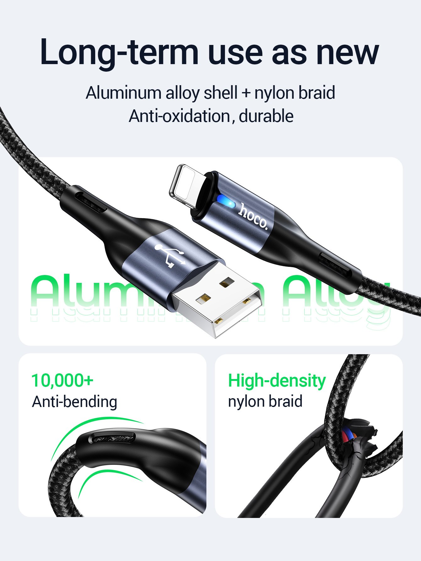 Mặc dù là sợi cáp sạc nhanh giá rẻ, tuy nhiên Hoco đã đặc biệt sử dụng vật liệu bọc nylon cho lớp vỏ ngoài sợi cáp. Chất liệu này không chỉ giúp cho sợi cáp có độ dẻo dai hơn, không lo rối dây hay đứt gãy trong quá trình sử dụng mà còn giúp bảo vệ tốt hơn cho lõi dây đồng bên trong. Nhựa TPE và hợp kim nhôm được gia công cho phần đầu cắm, được hoàn thiện vô cùng chắc chắn. Từ đó, người dùng có thể thoải mái cắm rút vô cùng linh hoạt, đồng thời bảo vệ tốt hơn cho các cổng sạc của điện thoại, tablet và sạc dự phòng,..