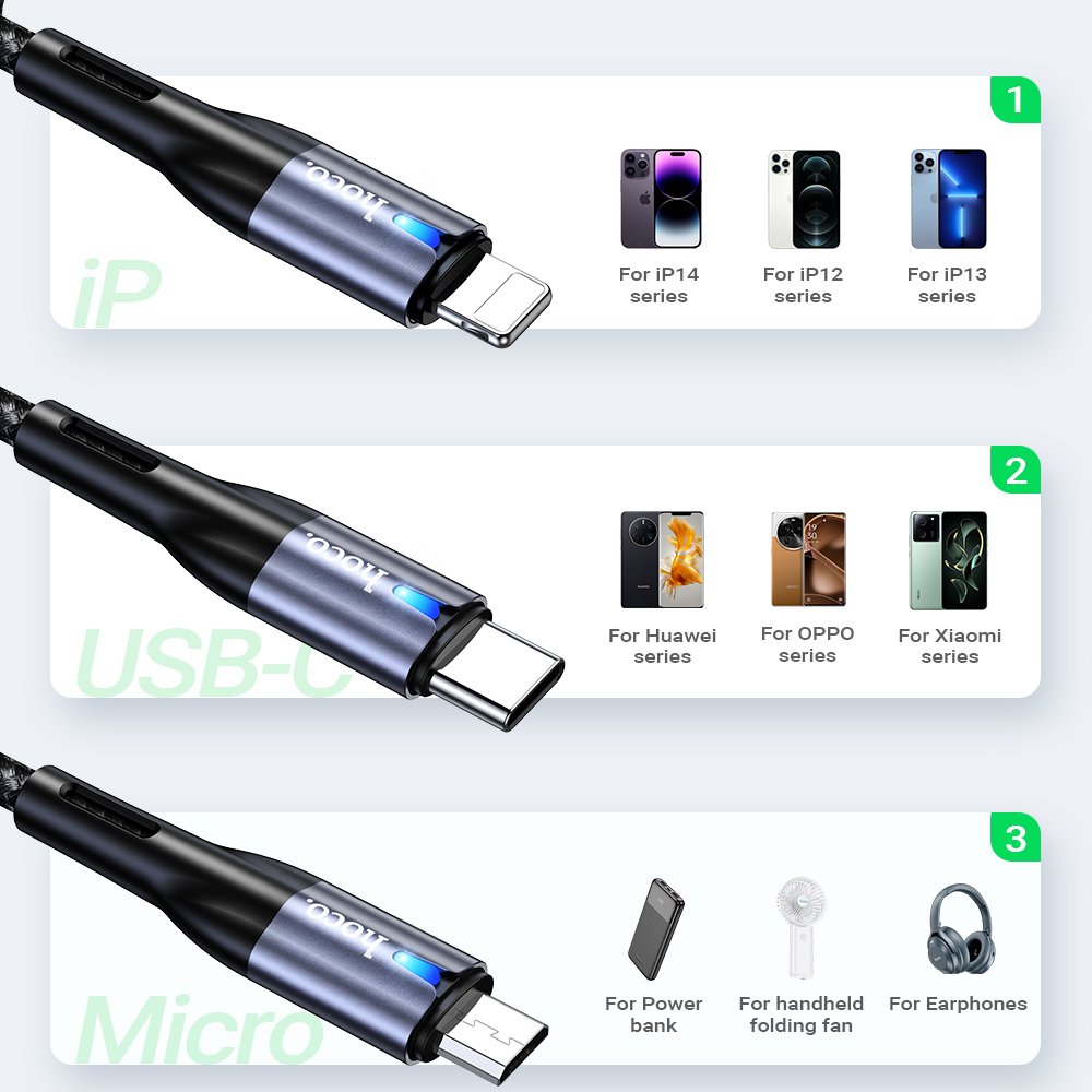 Cáp sạc Hoco Hoco DM-X6 hỗ trợ chiều dài sợi cáp 1m. Kích thước vừa phải này vừa đủ để bạn có thể kết nối sạc ở mọi khoảng cách, vừa hỗ trợ đủ lại vừa không gây rối rắm, bất tiện. Các đầu giao diện USB to LN, Micro, Type-C cũng được gia công vô cùng chắc chắn và hoàn thiện khá tốt nên người dùng có thể yên tâm về độ bền khi sử dụng.