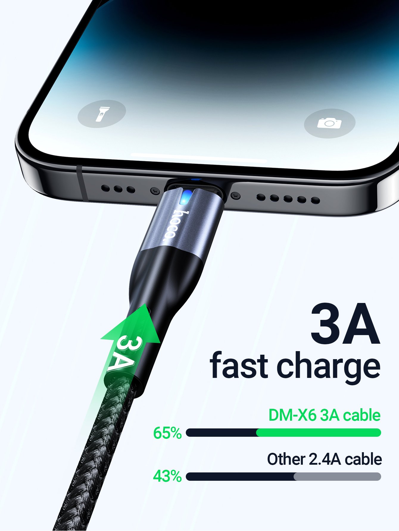 Cáp sạc nhanh Hoco DM-X6 được tích hợp công nghệ sạc chất lượng cao cho dòng sạc ổn định lên đến 3A. Từ đó hỗ trợ sạc nhanh cho mọi thiết bị với mọi chuẩn sạc nhanh khác nhau trên thị trường, hiệu suất sạc luôn đạt ở mức ổn định và tốt nhất. Ngoài ra, người dùng còn có thể sử dụng DM-X6 như một sợi cáp dữ liệu, hỗ trợ chuyển đổi nhanh chóng cho các tập tin có dung lượng lớn từ hình ảnh, video, tài liệu,...