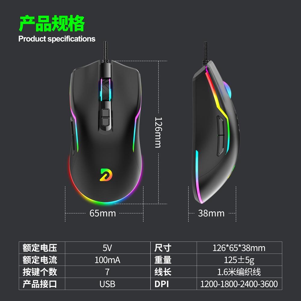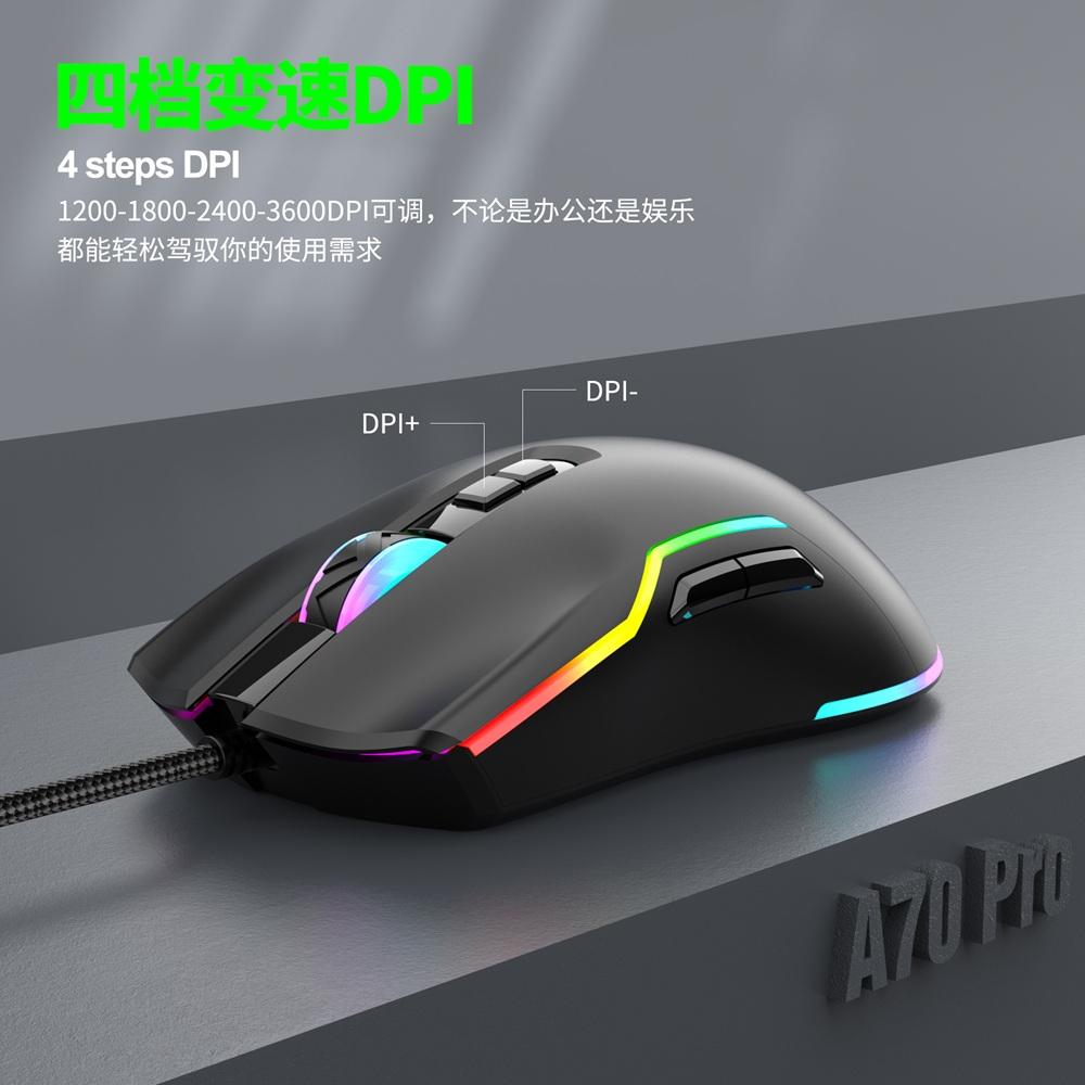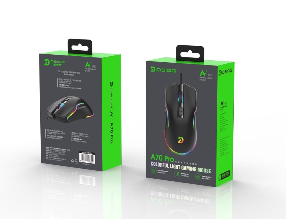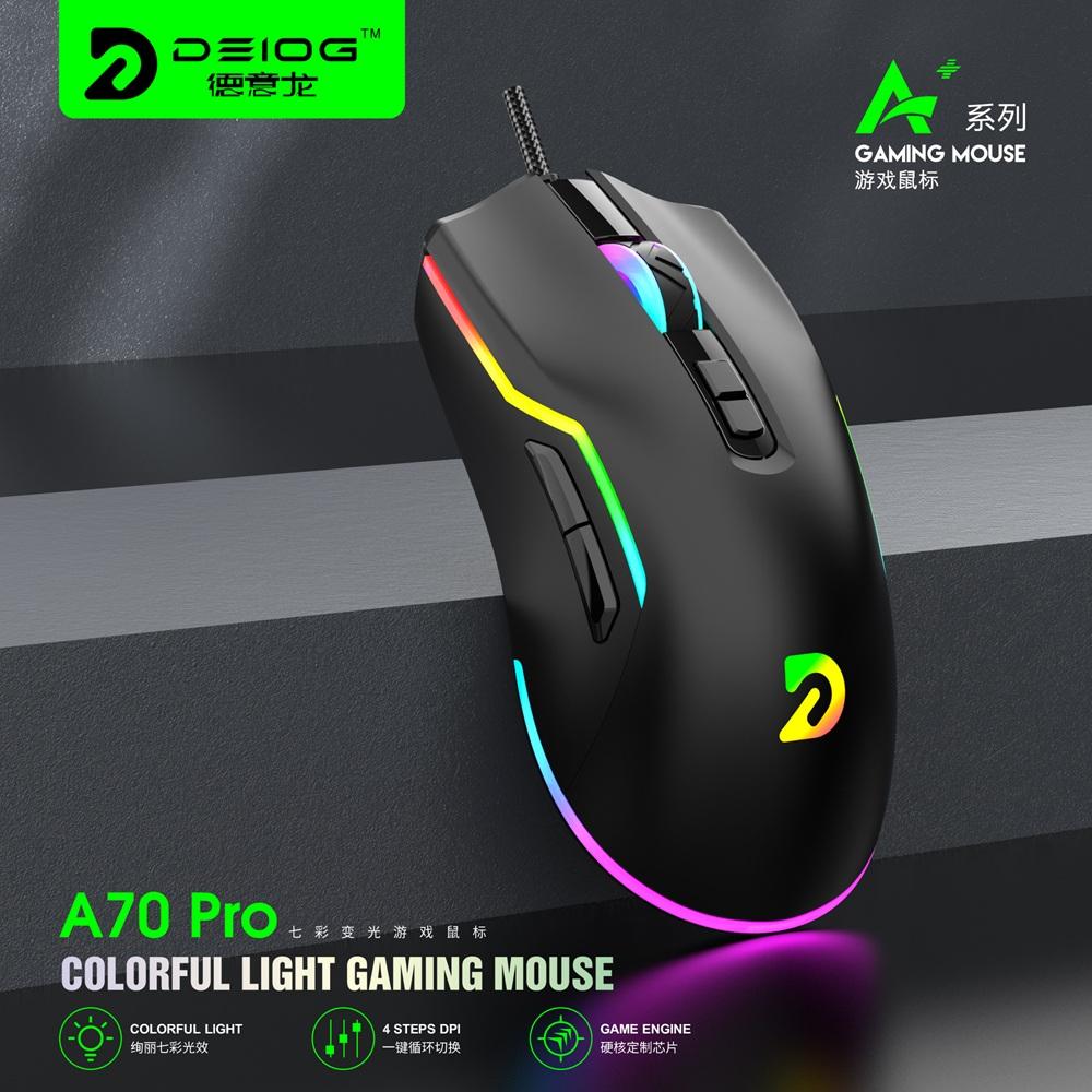 Chuột có dây Gaming 7D Deiog A70 Pro DPI 3600 siêu nhạy, Led RGB đa màu cực đẹp (Đen)