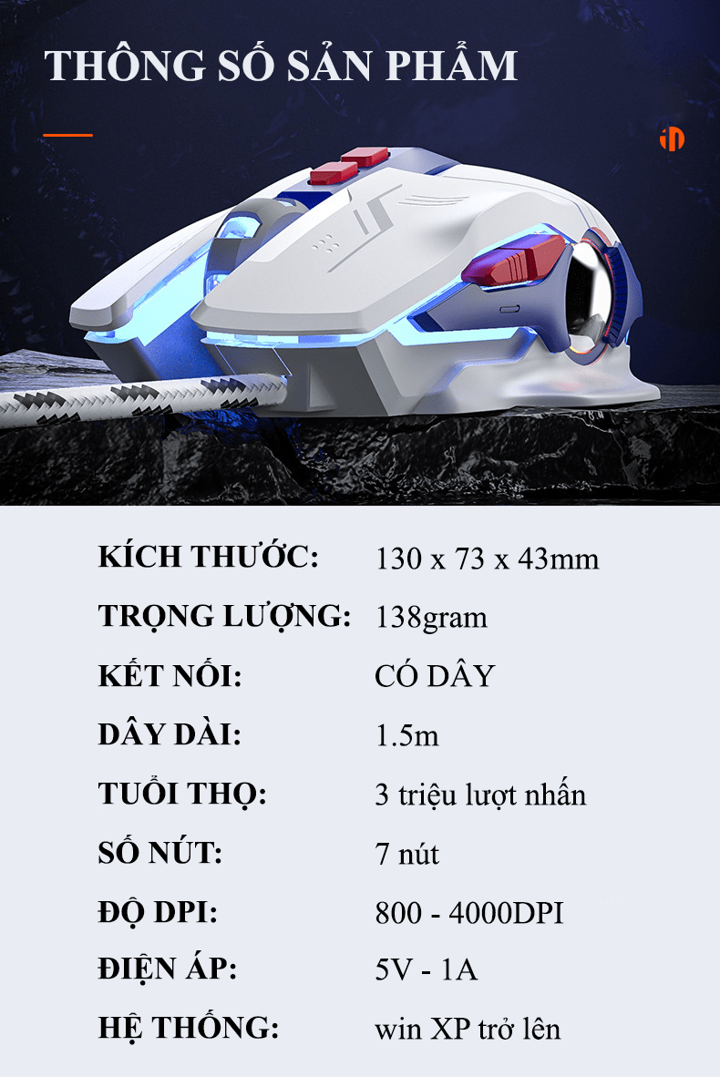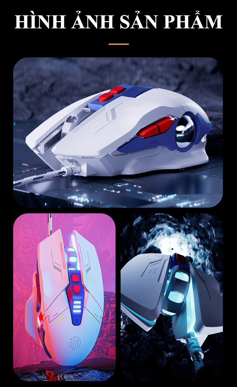 -Các chế độ hiệu ứng ánh sáng là: Màu hỗn hợp của hiệu ứng ánh sáng. Đèn LED tùy chỉnh lên tới 16 triệu màu rgb, với sự xuất hiện của gió kim loại cơ học, mang đến cho bạn một bữa tiệc thị giác. Hiệu ứng ánh sáng tuyệt vời cho con chuột có dây này mang đến bầu không khí tốt nhất cho bạn khi chơi game.