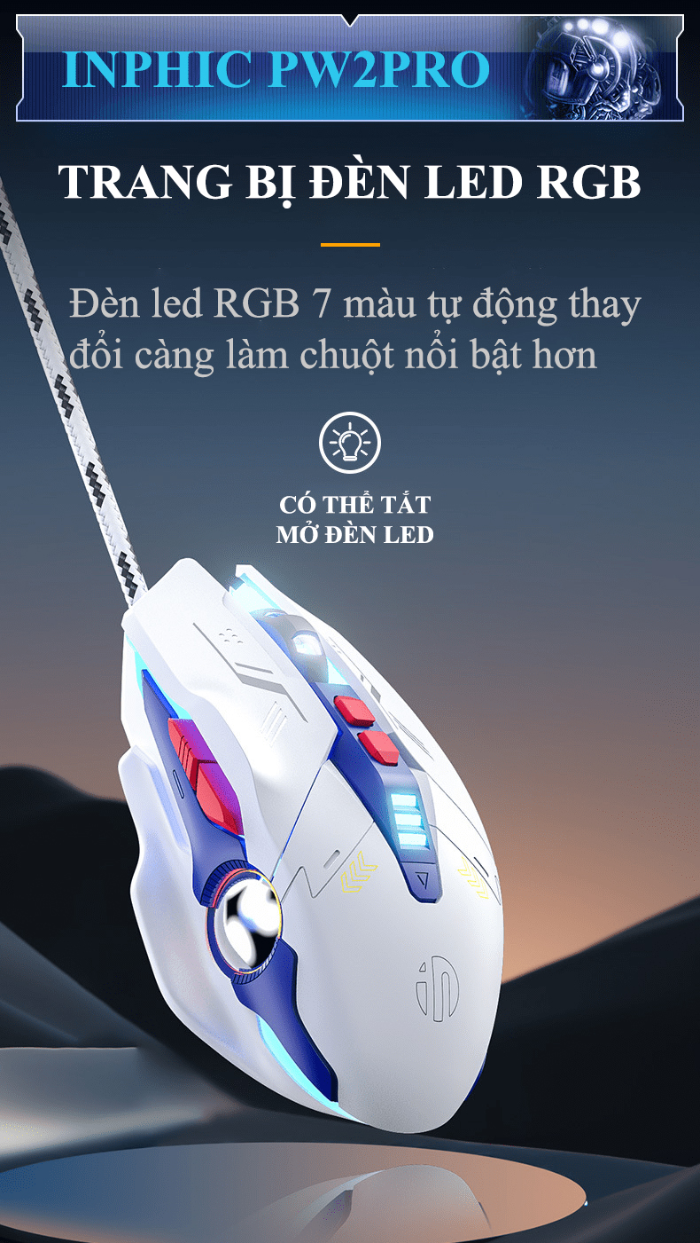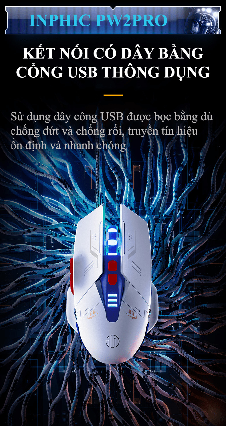 -Chuột chơi game INPHIC PC, tuổi thọ 30 triệu lần nhấp, cáp 1,5m dài và đủ chắc chắn để sử dụng hàng ngày.