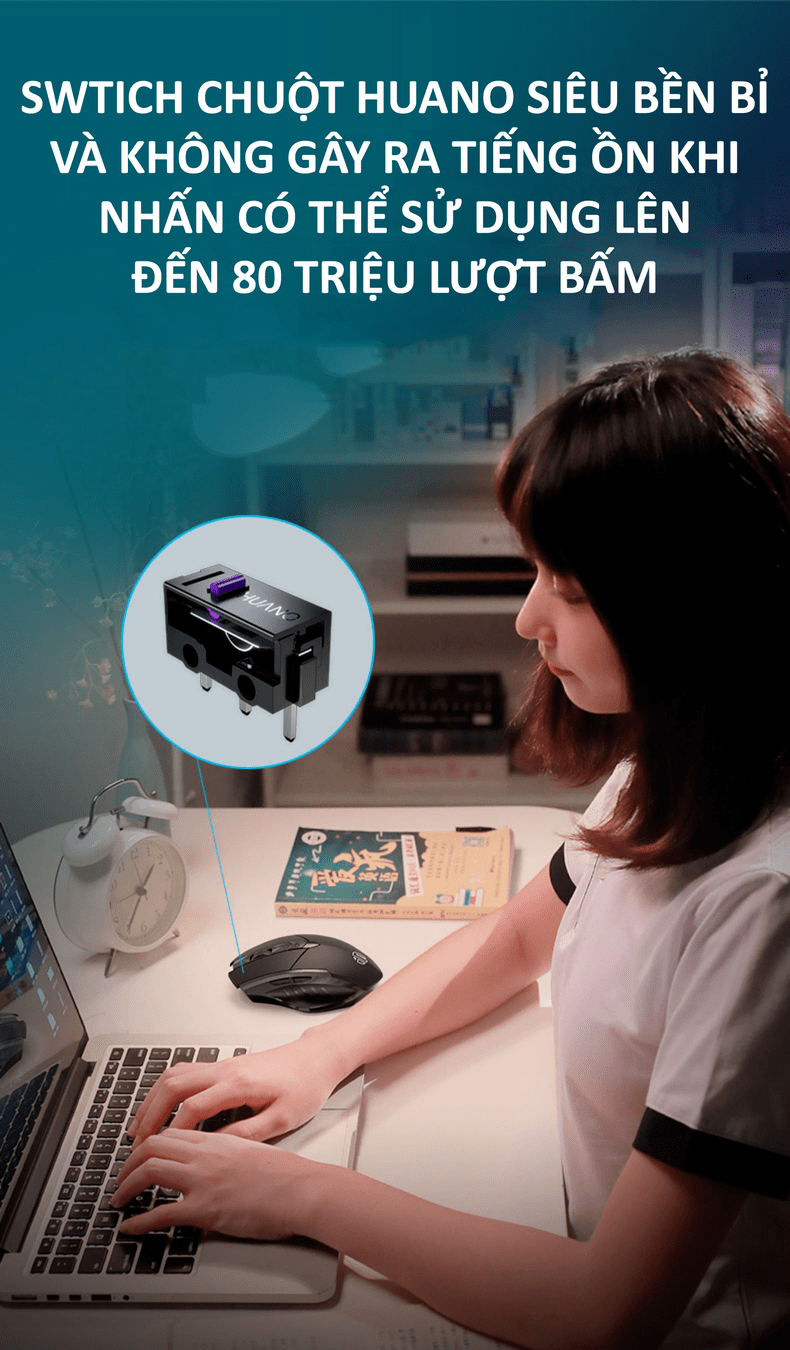 4. Tự động ngủ & tiết kiệm năng lượng: Chuột không dây của máy tính xách tay sẽ tự động chuyển sang chế độ ngủ sau 8 phút không hoạt động, đồng thời đèn thở RGB sẽ tắt để tiết kiệm năng lượng, nó sẽ được kích hoạt lại bằng cách di chuyển nhẹ nhàng.