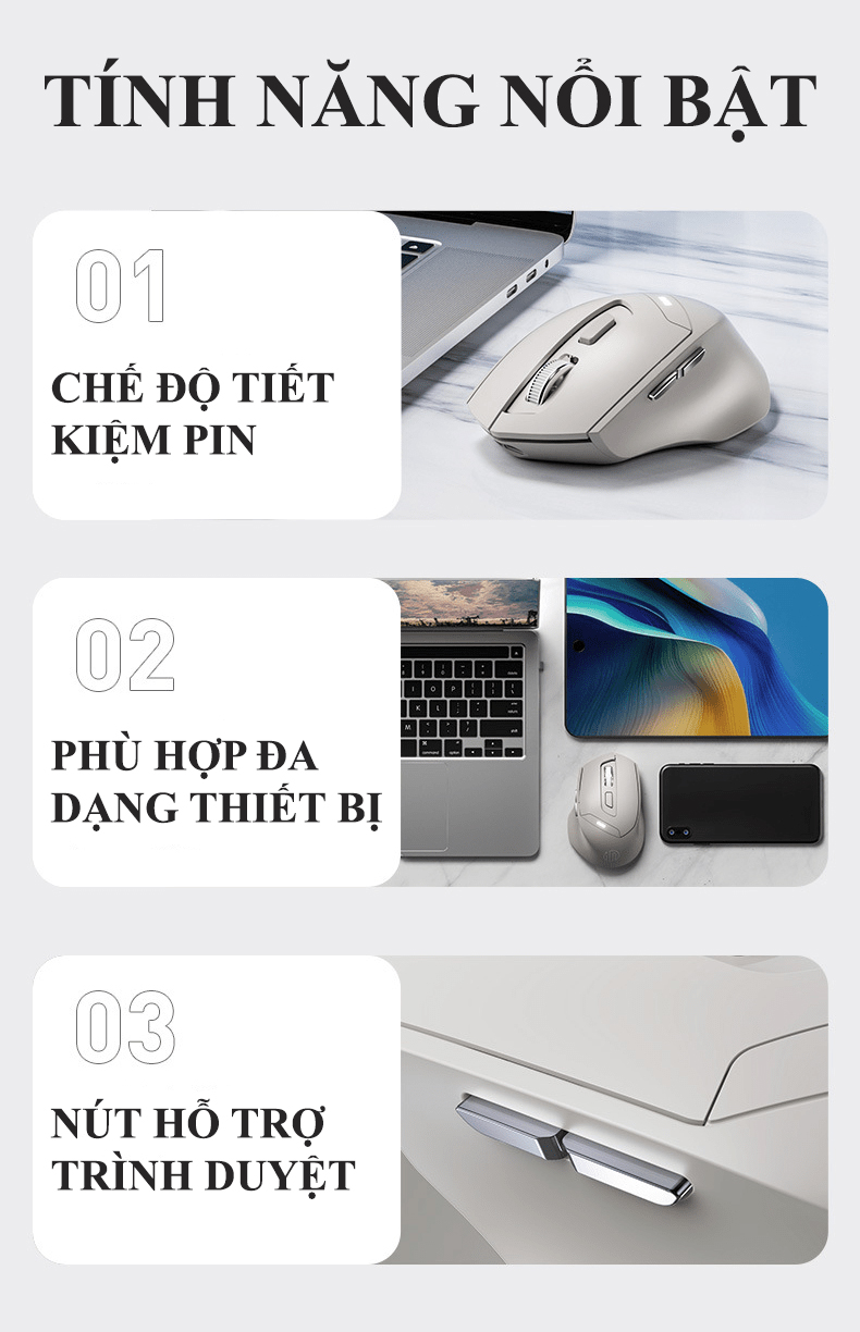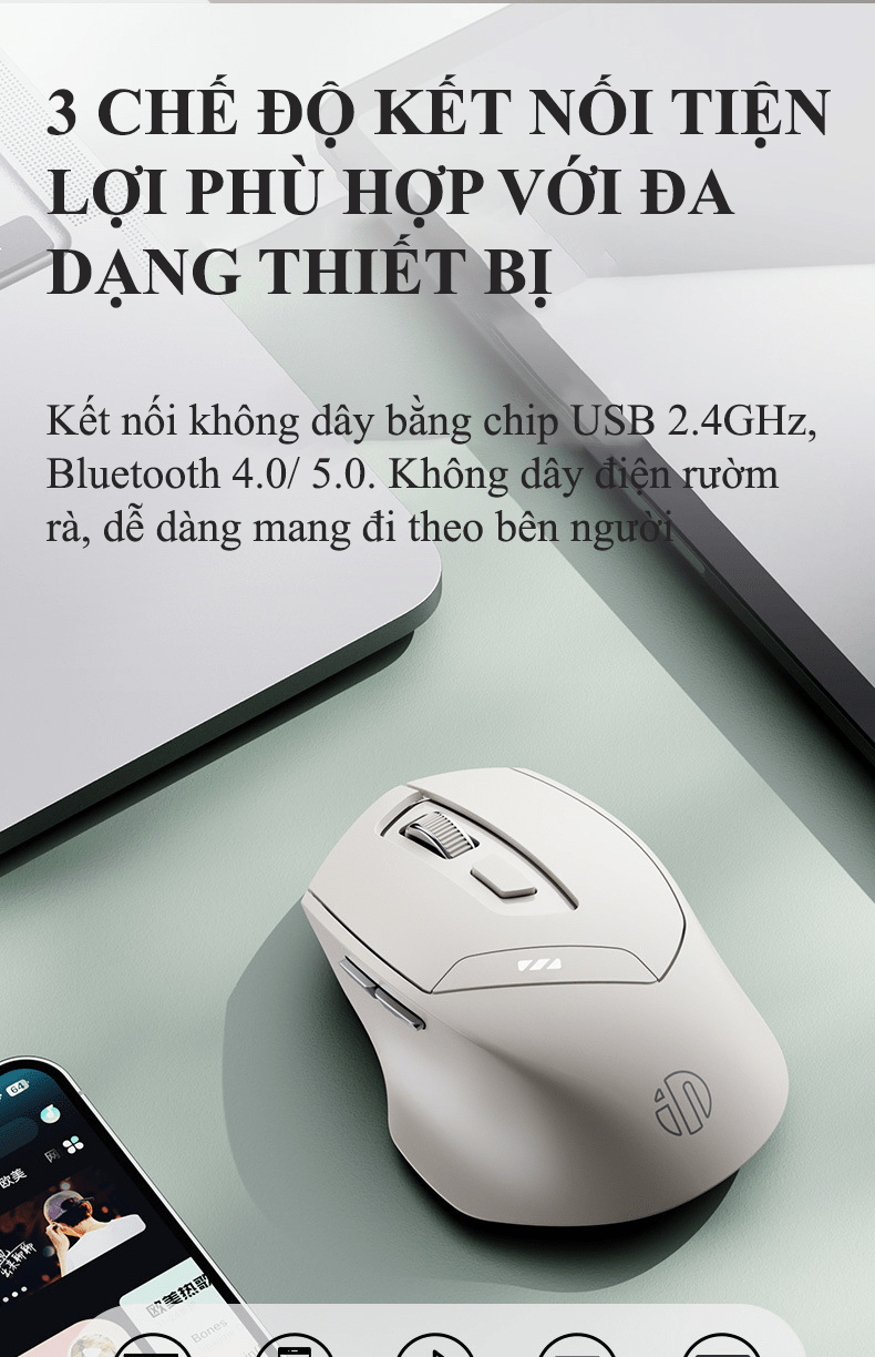 - Loại chuột: quang - wireless - bluetooth (4.0 và 5.0)- pin sạc - siêu tiết kiệm pin - slient cực êm