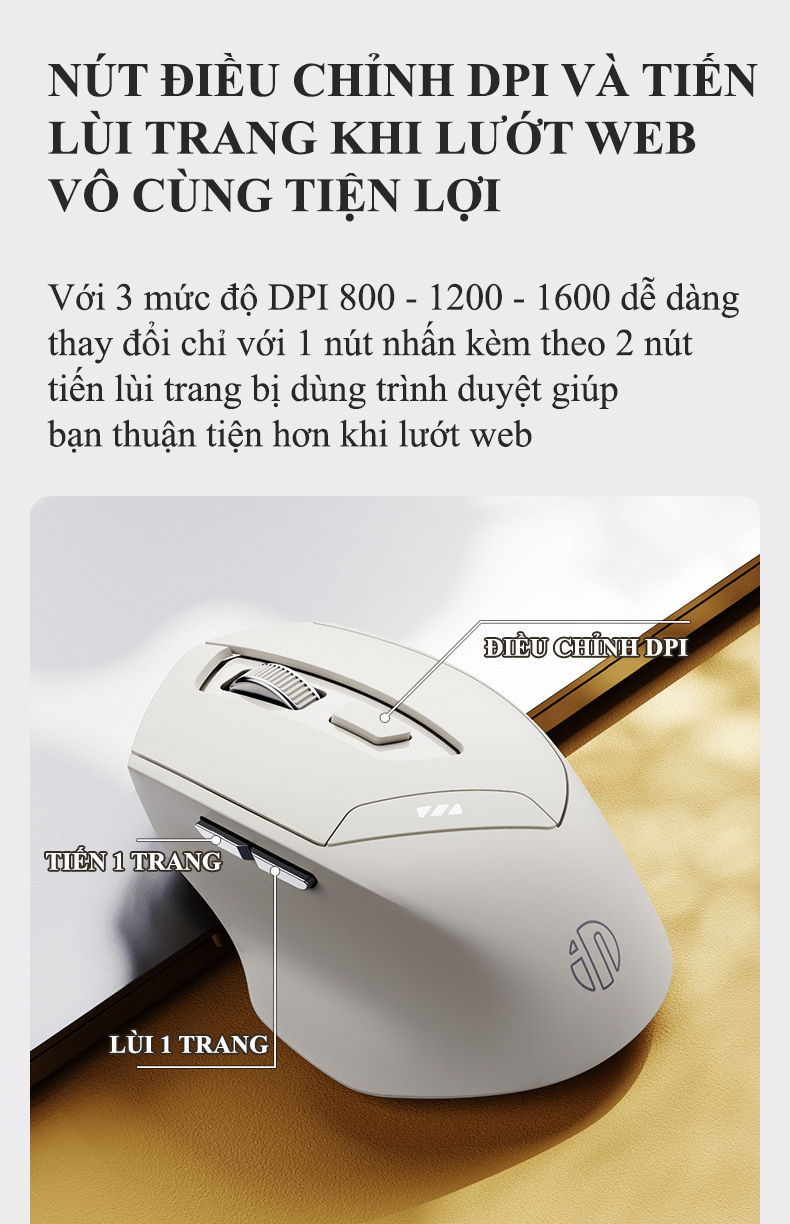 Sáu nút hiệu quả và 3 mức DPI có thể điều chỉnh (800/1200/1600) cho phép bạn tự do kiểm soát tốc độ chuột.