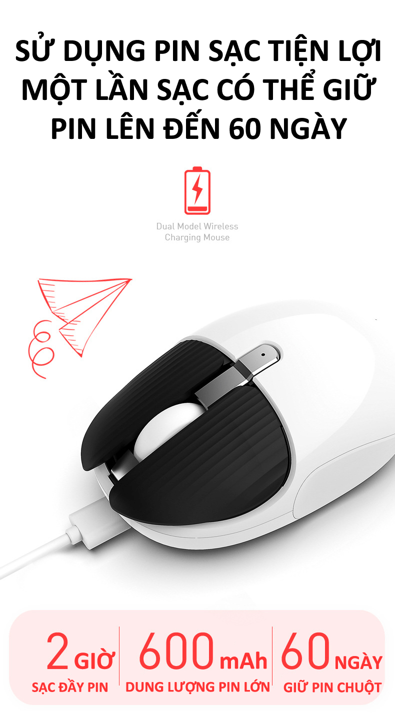 ● Loại chuột: quang - wireless - bluetooth - pin sạc - siêu tiết kiệm pin