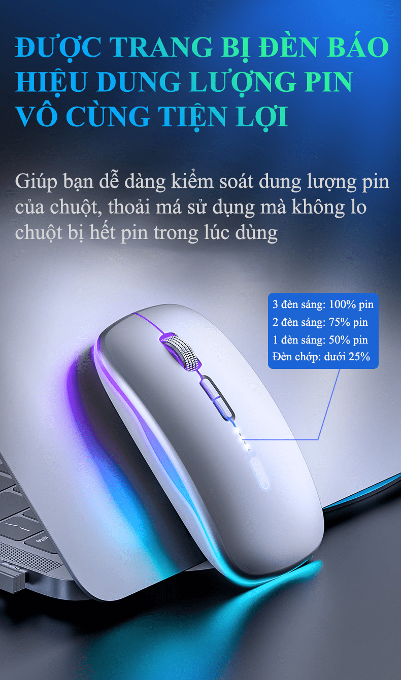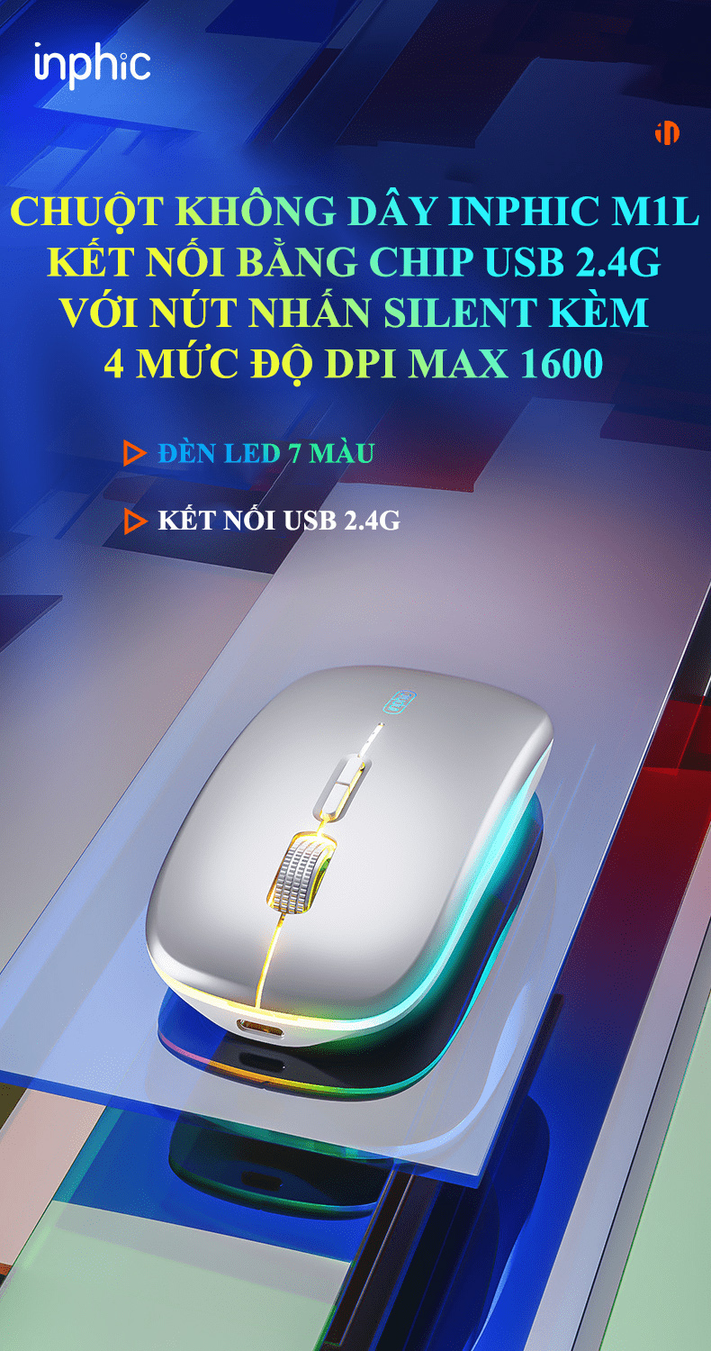 Chuột không dây inphic Led có pin sạc 600mAh tích hợp có thể sạc lại qua cáp USB. Công nghệ tiết kiệm năng lượng khi ngủ tự động vượt trội của nó có thể đảm bảo tuổi thọ pin lâu dài. Nói lời tạm biệt với việc thay pin nhiều lần.