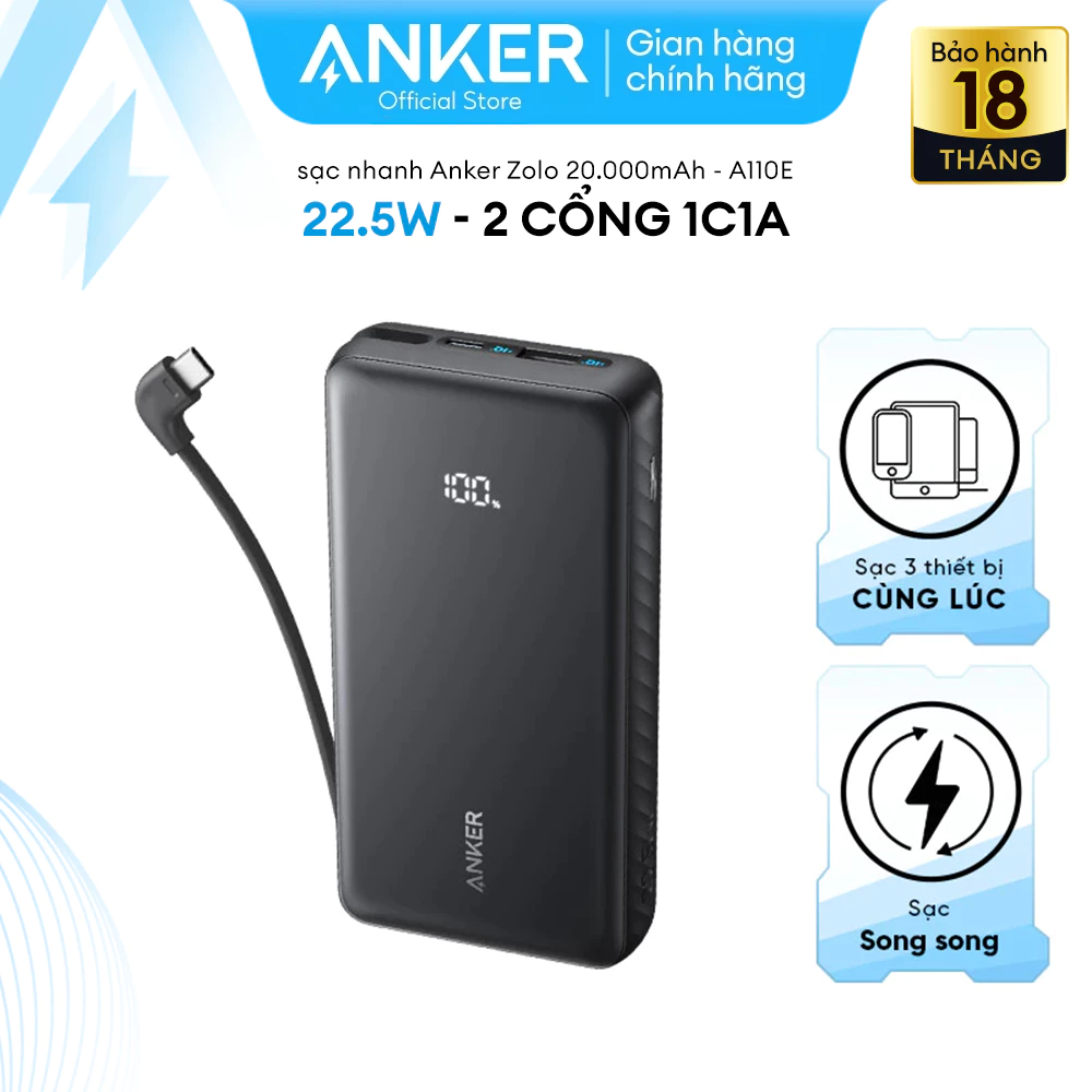 Trong kỷ nguyên số, một nguồn năng lượng di động đáng tin cậy là người bạn đồng hành không thể thiếu. Pin sạc dự phòng Anker Zolo A110E ra đời để đáp ứng hoàn hảo nhu cầu đó, kết hợp giữa dung lượng pin "khủng", công nghệ sạc nhanh tiên tiến và thiết kế thông minh, sẵn sàng cùng bạn đi đến bất cứ đâu.