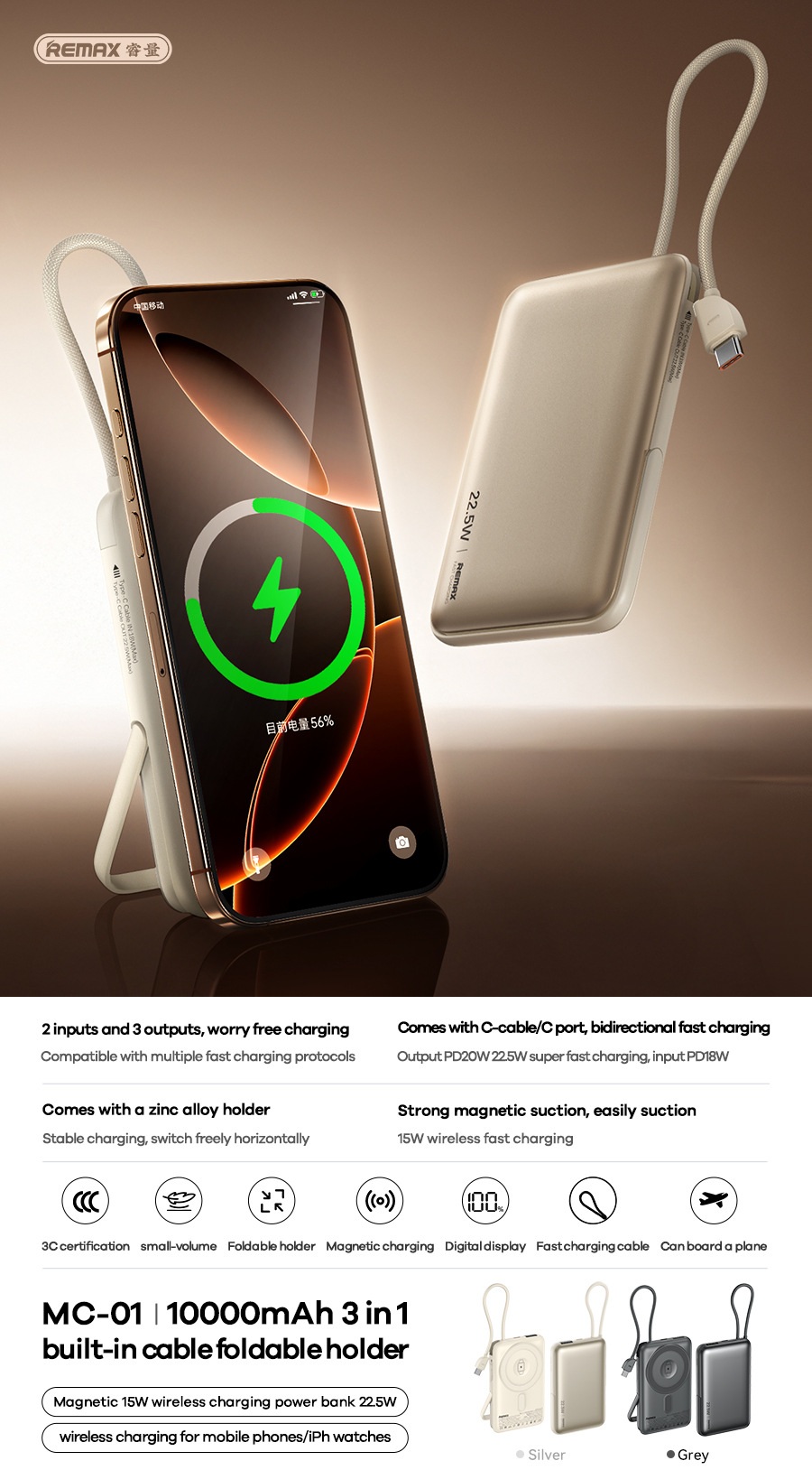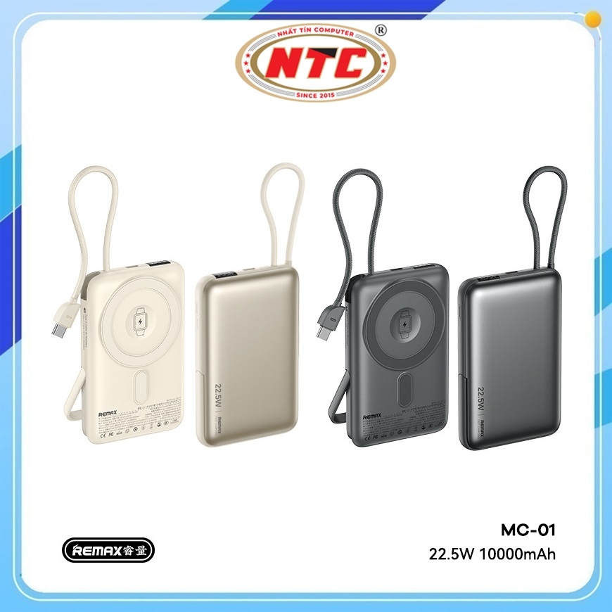 (Có 3C) Pin Dự Phòng Không dây Remax MC-01 10000mAh Sạc Magnetic 15W, Cổng và Cáp TypeC PD in 18W / out 20W - Hỗ trợ sạc cho Smart Watch