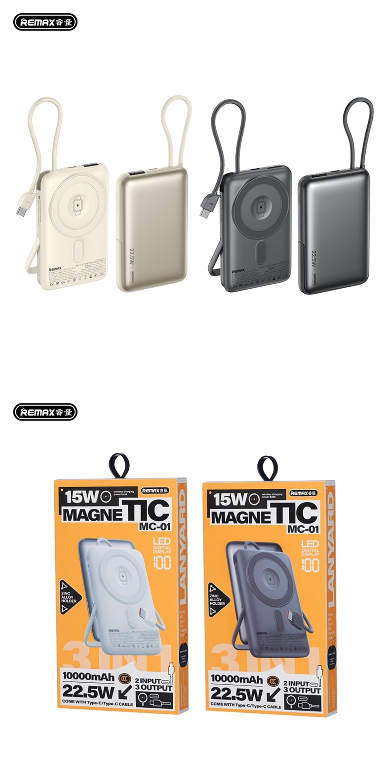 3. Cáp Type-C tích hợp có thể kéo ra để sạc nhanh thiết bị, và khi thu lại, có thể biến thành dây treo, thuận tiện sử dụng trong nhiều trường hợp khác nhau;