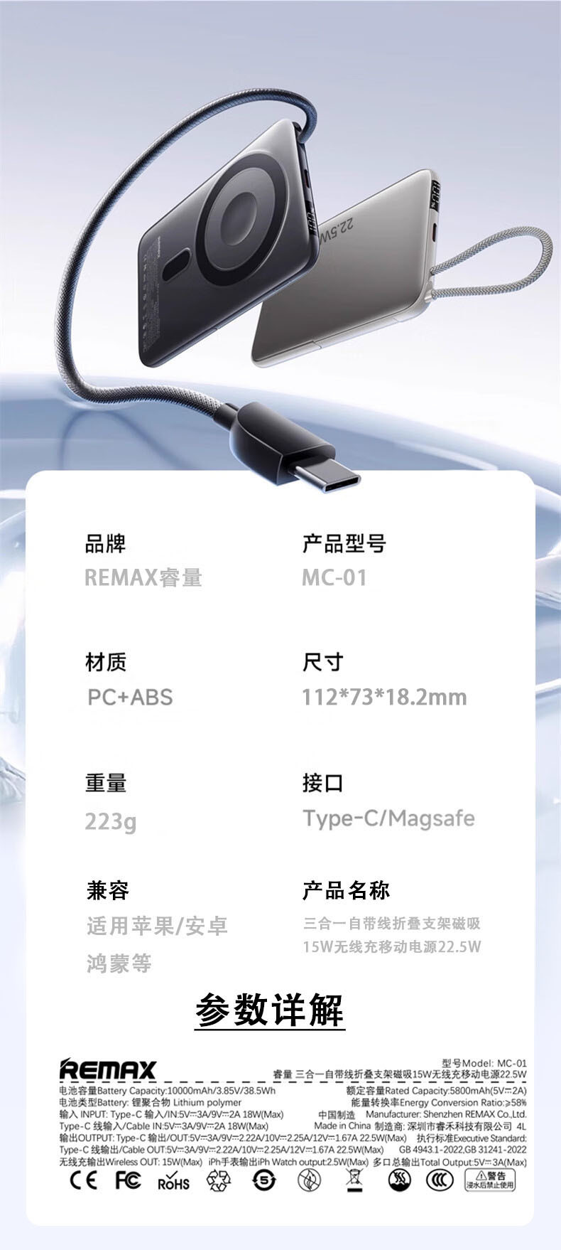 2. Được trang bị cáp Type-C và cổng Type-C, hỗ trợ sạc nhanh hai chiều Sạc, đầu ra sạc siêu nhanh 22.5W và tương thích với sạc nhanh PD20W. Sản phẩm hỗ trợ sạc siêu nhanh Huawei và sạc nhanh PD dòng Apple 15/16, đầu vào sạc nhanh PD18W;