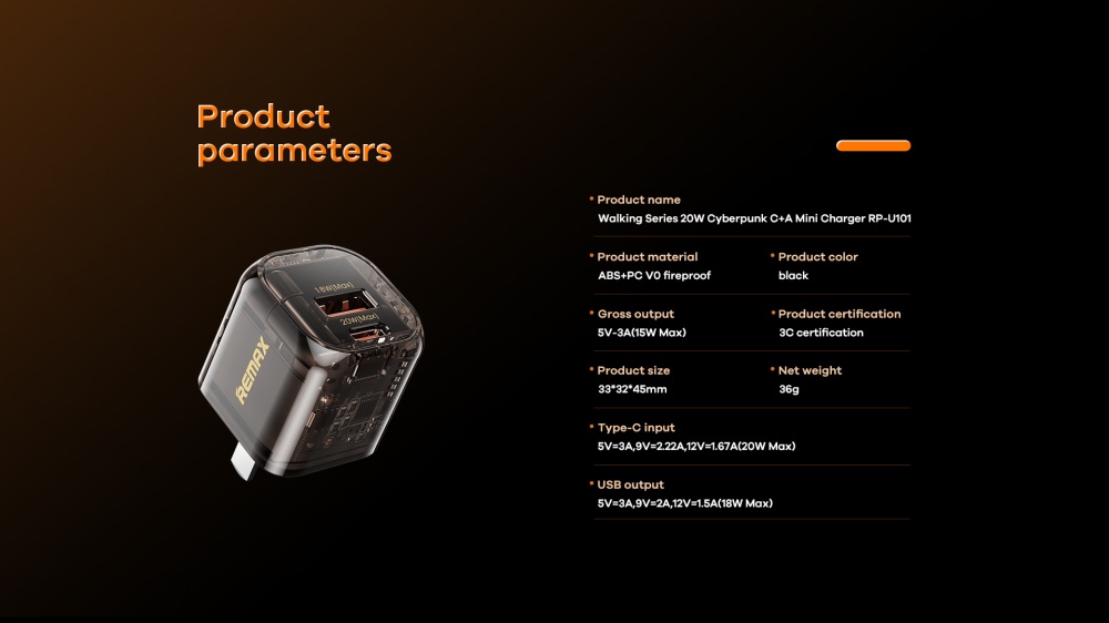 TypeC: 5V-3A / 9V-2.22A / 12V-1.67A (20W Max)