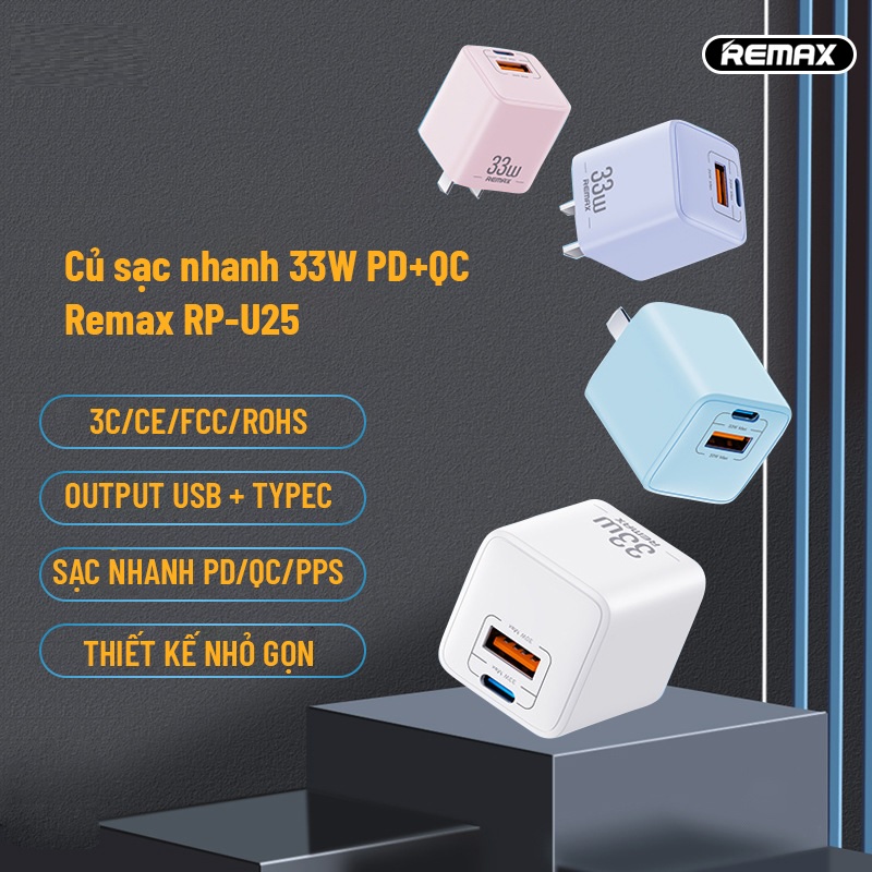 Củ sạc nhanh GaN 33W Remax RP-U25 an toàn