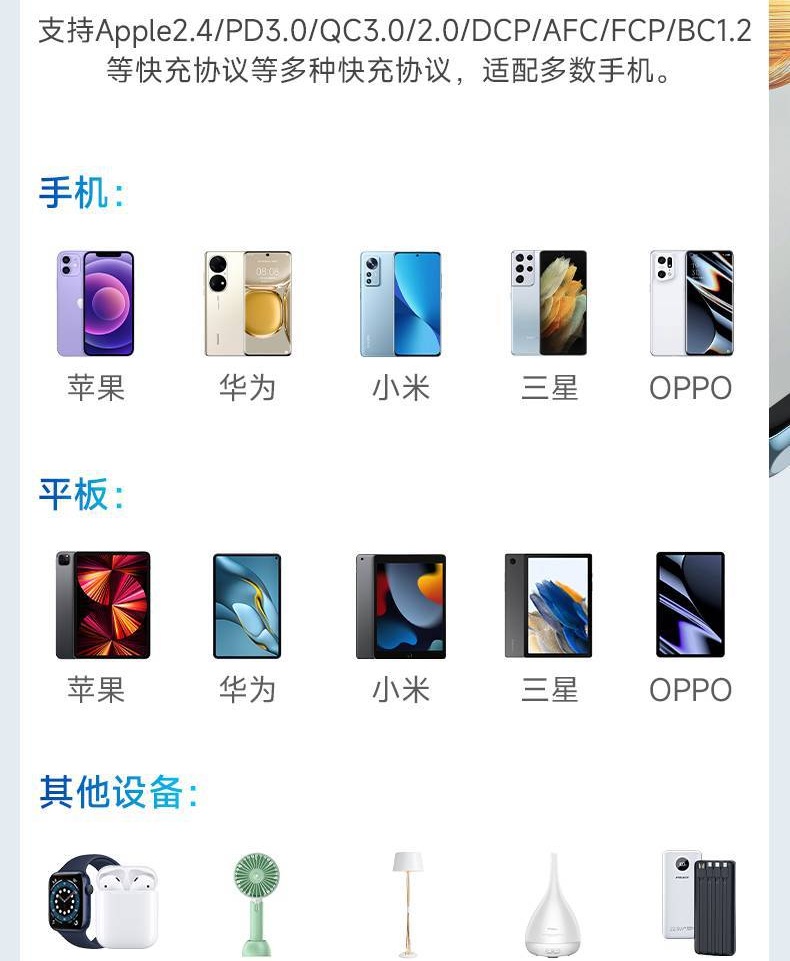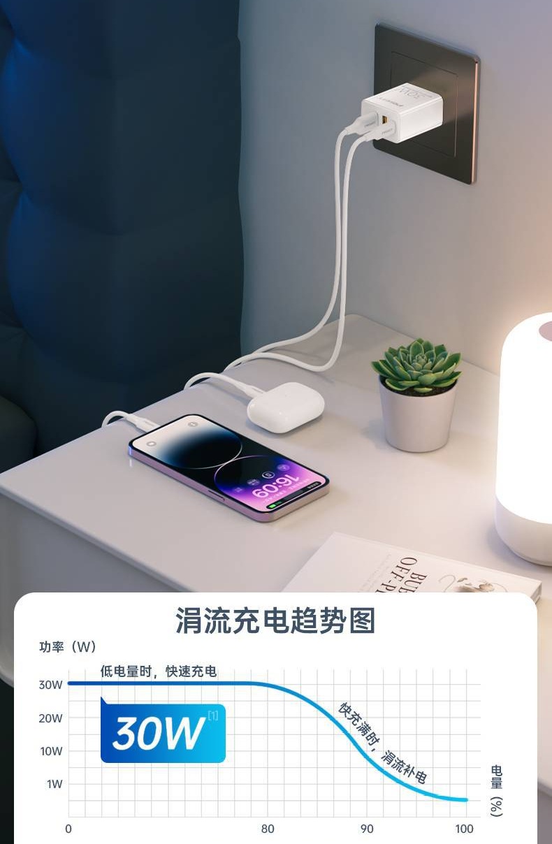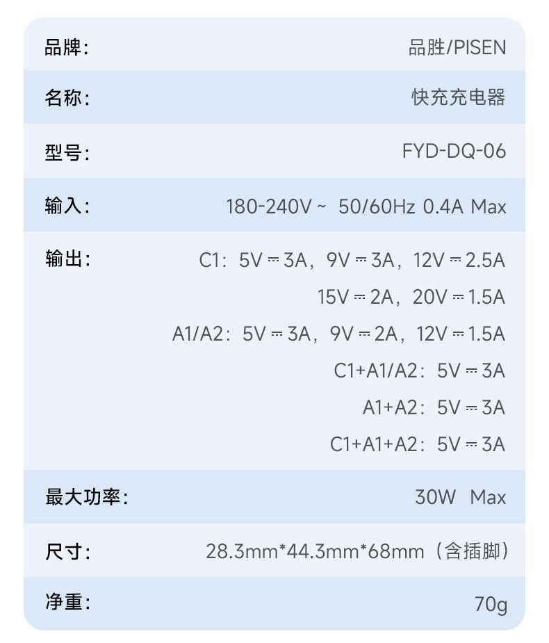 ● Output TypeC: 5V/3A; 9V/2A; 12V/2.5A; 15V/2A; 20V/1.5A (30W Max)