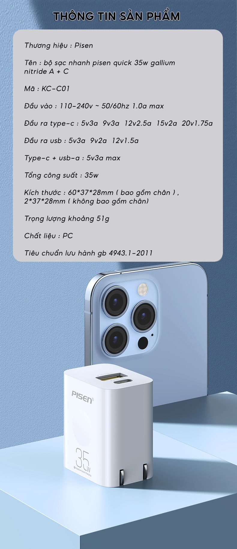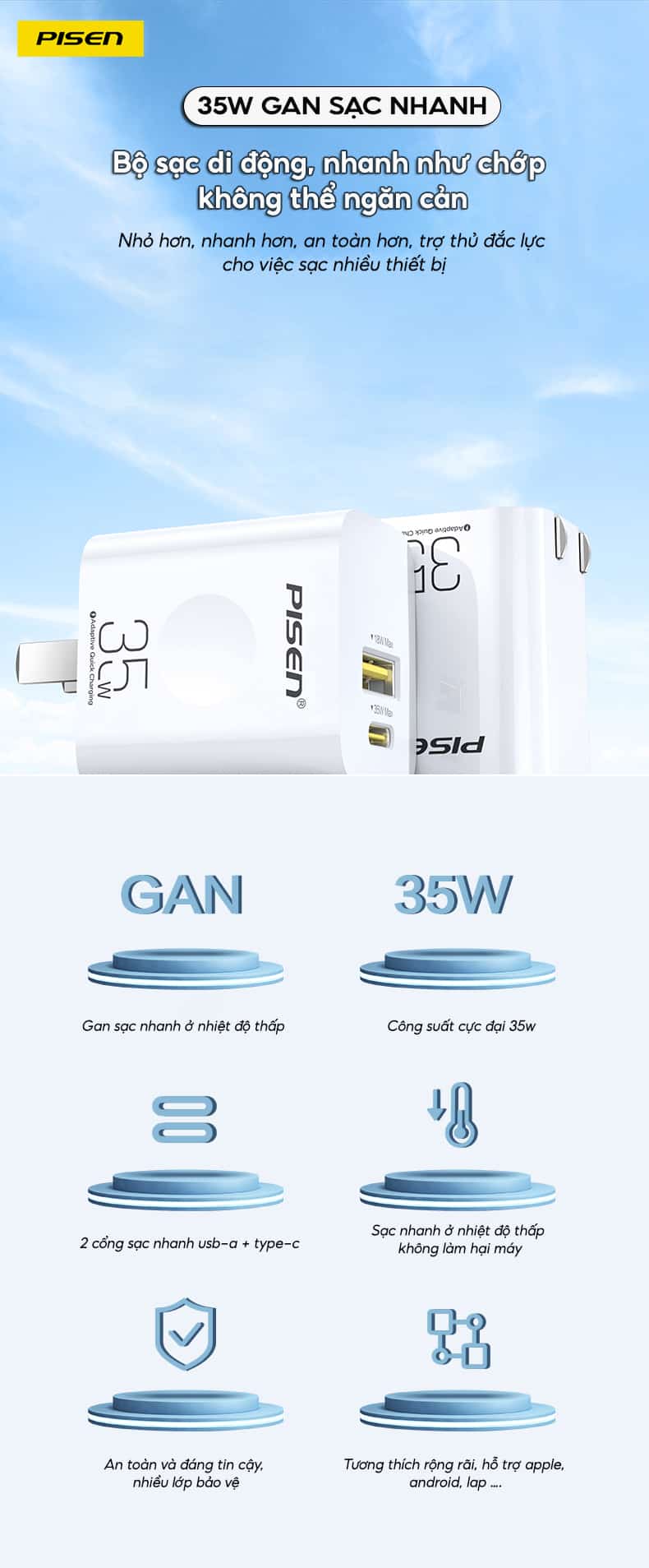 #pisen #cocsacpisen #cocsacnhanh #cocsacnhanhpisen #cocsac2congpisen #pisenKC-C01 #pisen2cong #KC-C01 #35W #18W #changap #nhattin #nhattincomputer #shoplinhkien