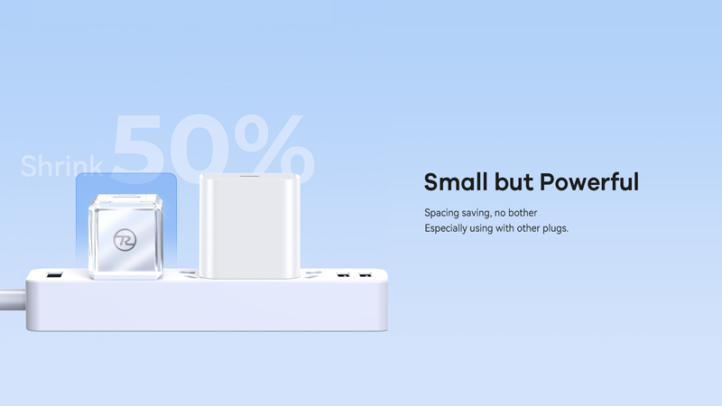 Củ sạc nhanh Remax RP-U93 QC3.0 + PD30W tích hợp 2 cổng sạc nhưng có kích thước vô cùng nhỏ gọn, chỉ tương đương với các loại củ sạc 1 cổng thông thường. Người dùng có thể thoải mái mang theo khi đi ra ngoài, đem theo các chuyến công tác, du lịch,... mà không sợ tốn diện tích.