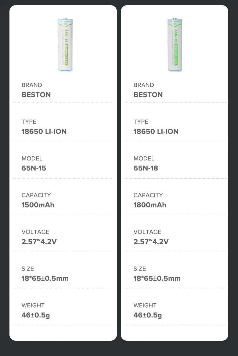 Dung lượng: 1200mAh / 1500mAh / 1800mAh
