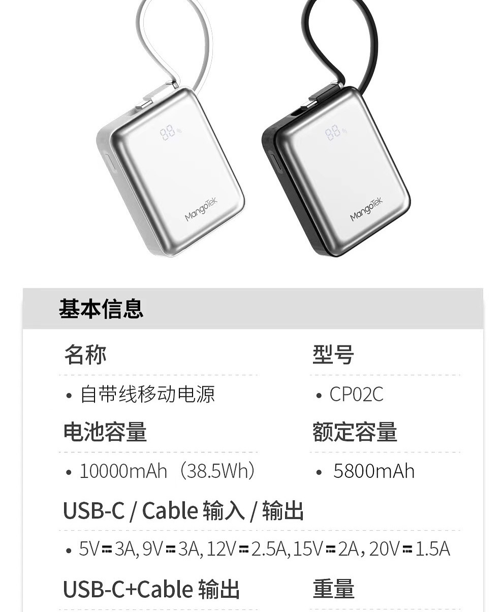Cục Sạc Dự Phòng mini MangoTek CP02C 10000mAh TypeC PD 30W, Kèm cáp TypeC, Thiết kế siêu nhỏ
