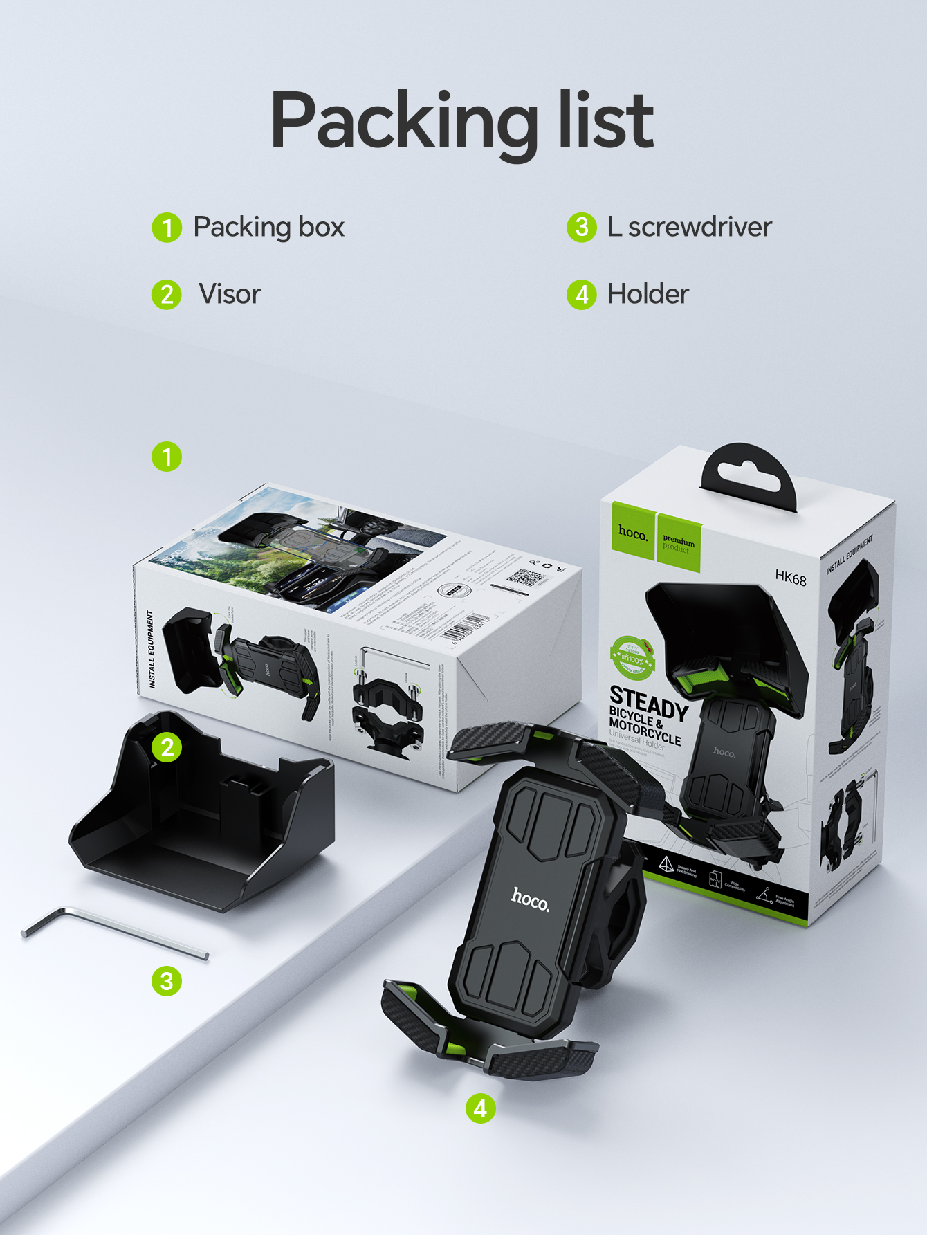 Giá đỡ điện thoại trên Xe máy, Xe đạp Hoco HK68 Có mái che nắng mưa (Đen)
