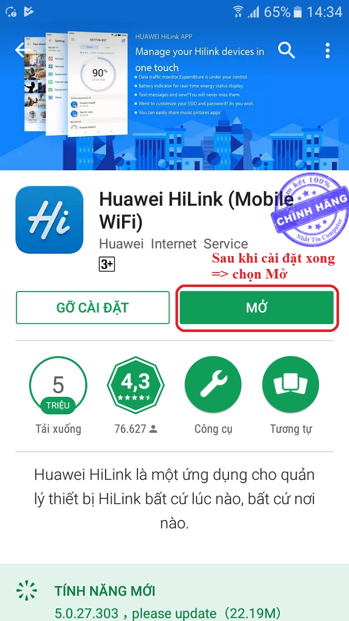 Hướng dẫn thay đổi tên và mật khẩu thiết bị phát wifi Huawei bằng app Huawei HiLink