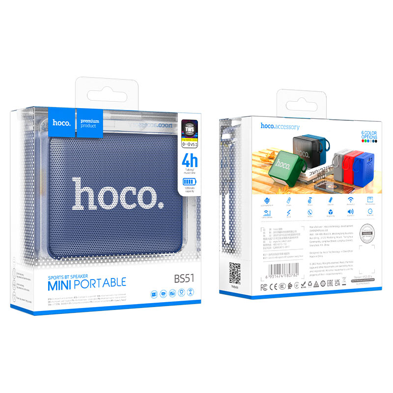 BS51 Gold cục gạch, loa không dây, BT v5.2, với pin 1200mAh, cho 4 giờ làm việc, hỗ trợ các chế độ phát BT, TWS, FM, TF, USB