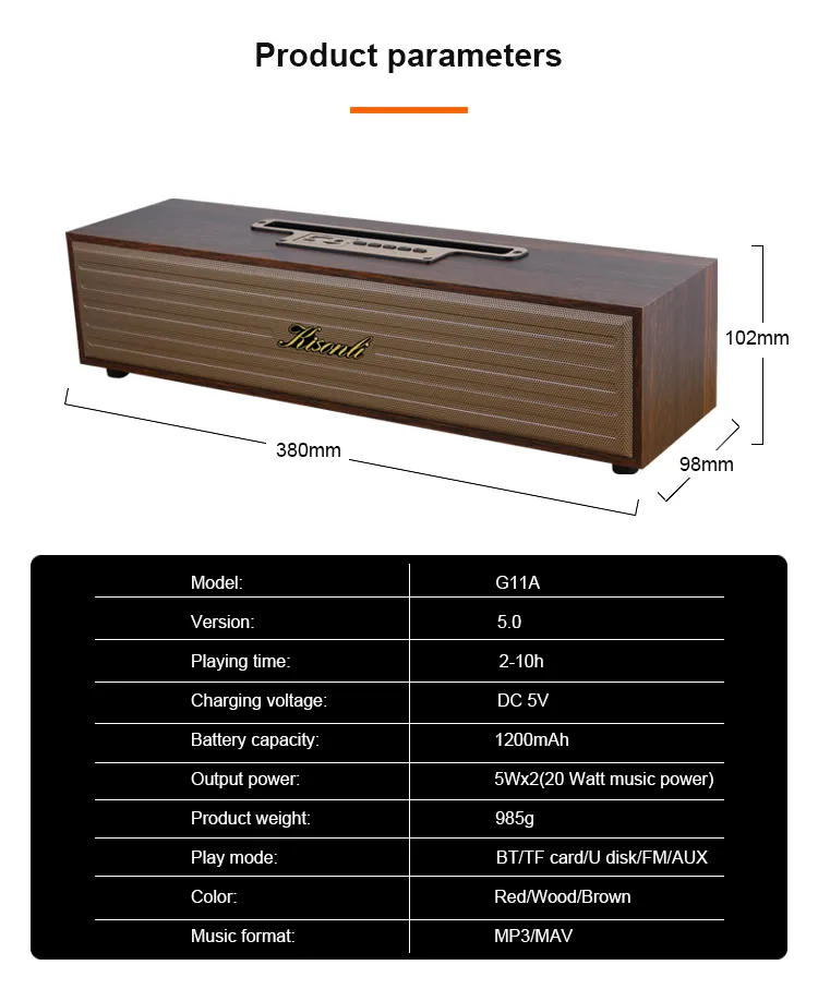 - Chức năng: Bluetooth - FM - USB - Thẻ nhớ - AUX (từ thiết bị qua loa bằng jack 3.5mm) - thoại rãnh tay