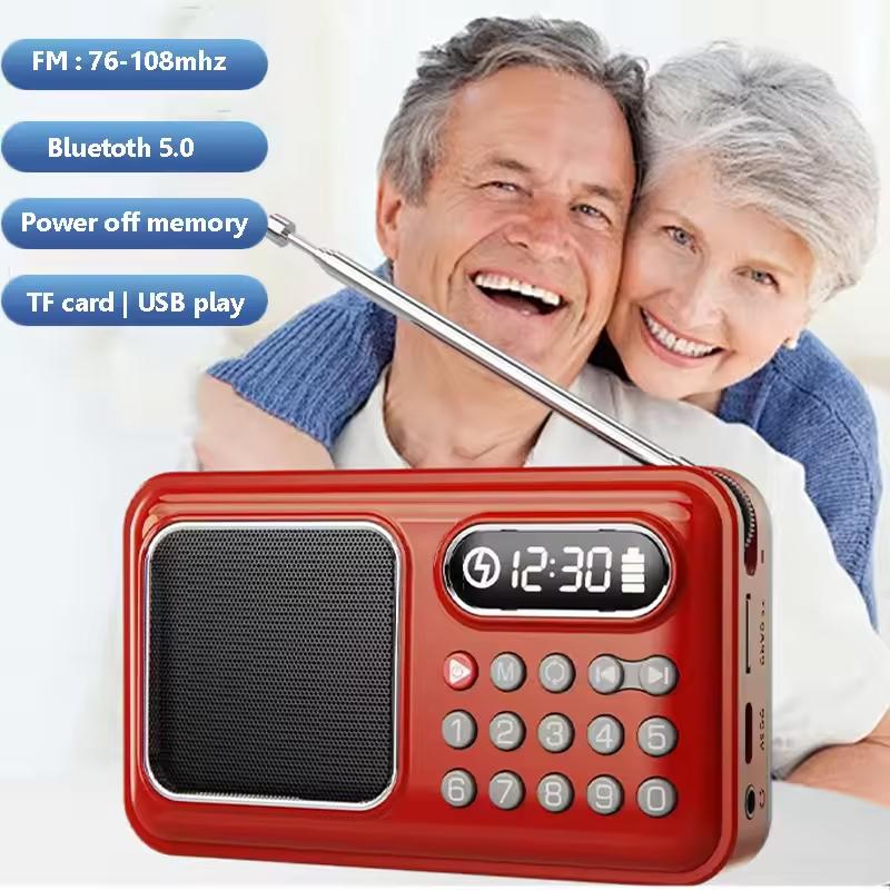 - Kết nối đa dạng: Tích hợp Bluetooth 5.0 (hoặc 5.3 tùy phiên bản) để phát nhạc từ điện thoại, hỗ trợ khe cắm thẻ nhớ TF và cổng USB để nghe nhạc MP3.